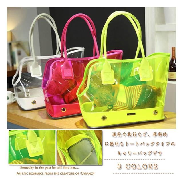 猫キャリーバッグ 小型犬 中型犬 ペットキャリーバッグ 透明 クリア トートバック おしゃれ 折りたたみ 収納にも便利