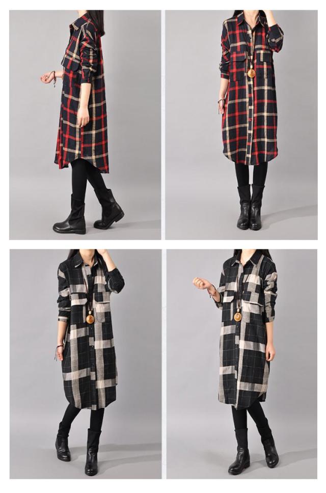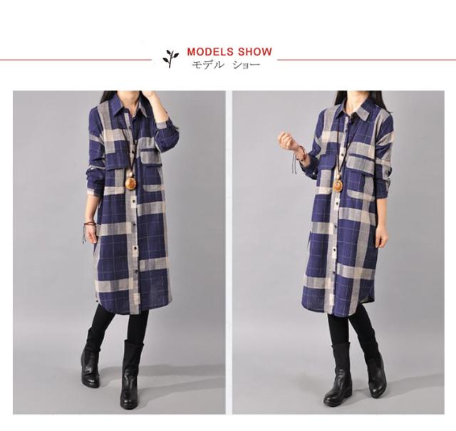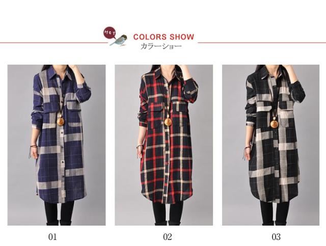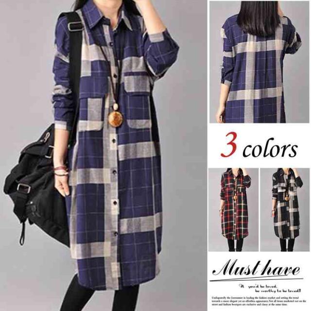 チェックシャツ レディース シャツワンピ チェック柄 ロングシャツ スキッパーシャツ 長袖 チュニック 薄手 春夏