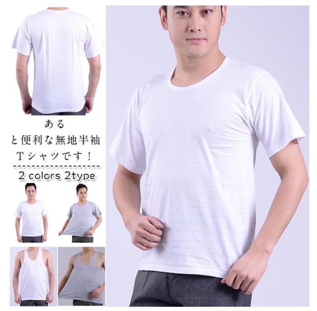 半袖Tシャツ 無地Tシャツ インナーTシャツ メンズトップス カジュアルTシャツ サマーTシャツ コットンTシャツ 無地タンクトップ 肌着 リラックス