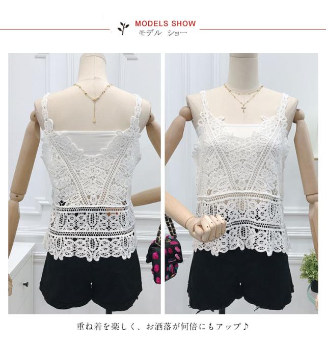 キャミソール タンクトップ レディース トップス レース 重ね着 可愛い ノースリーブ オシャレ 2018春夏新作