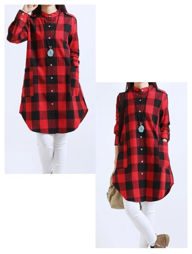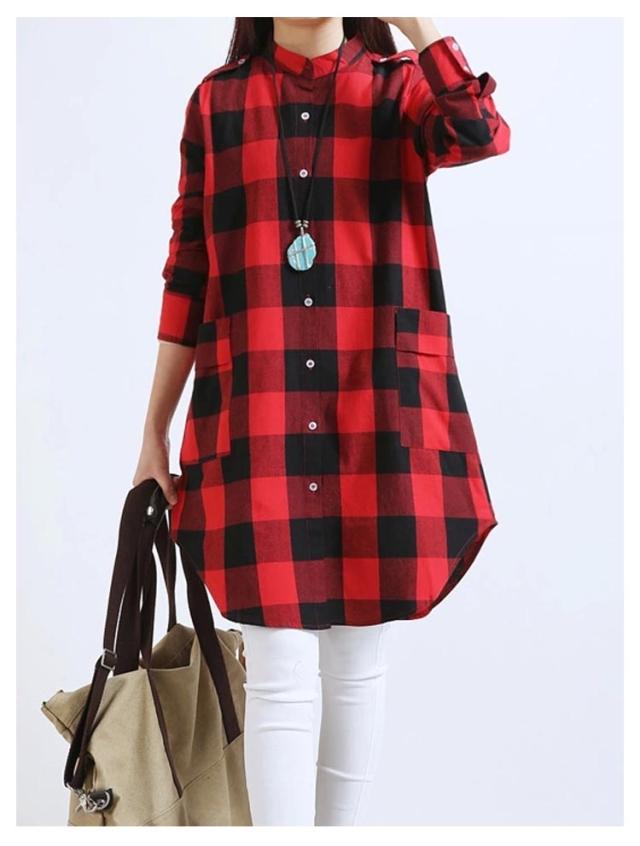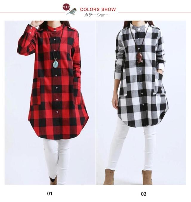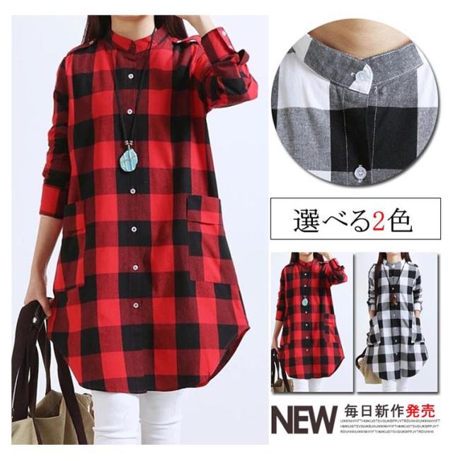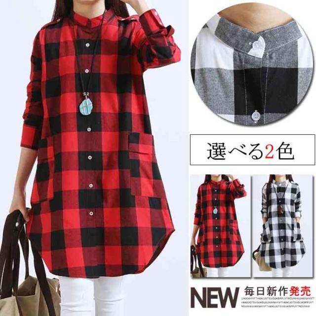 チェックシャツ レディース シャツワンピ チェック柄 ロングシャツ スキッパーシャツ 長袖 チュニック シャツ ワンピース春