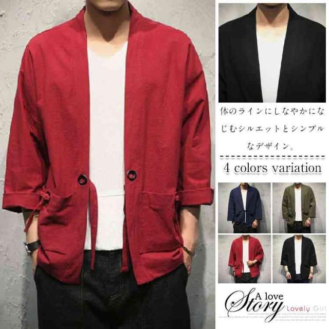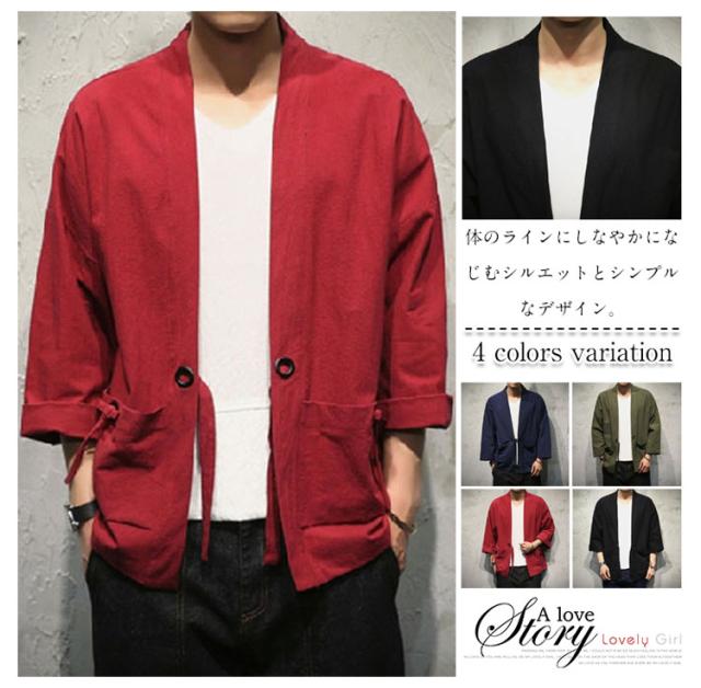 ジャケット アウター 着物 羽織 メンズ 甚平 浴衣風 四季適用 無地 復古 和式 涼しい コー ト無地 カジュアル おしゃれ お兄系