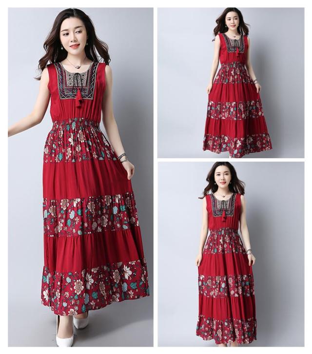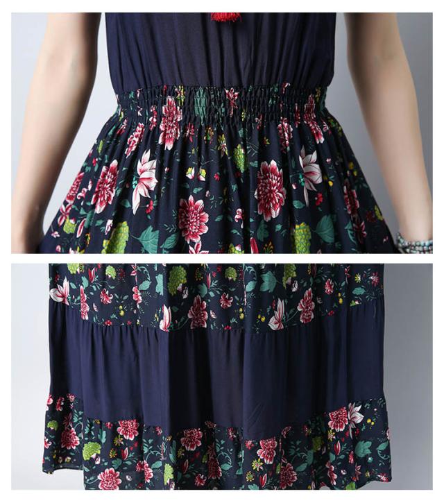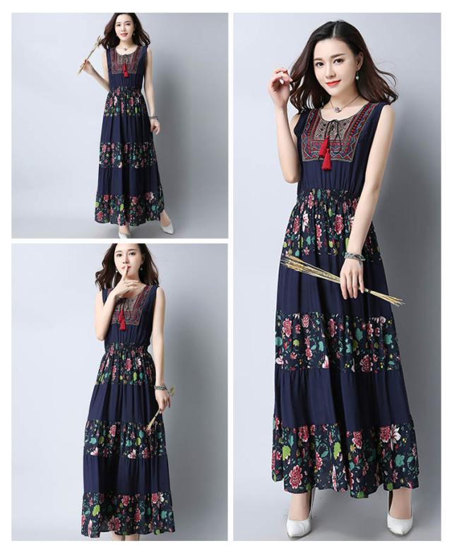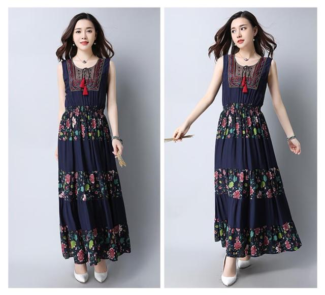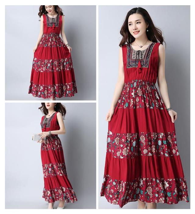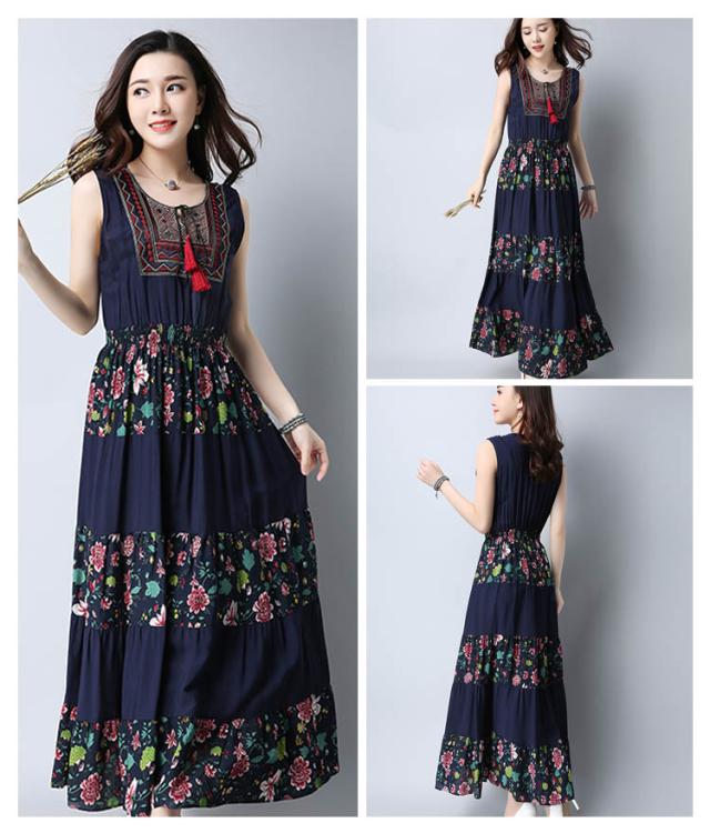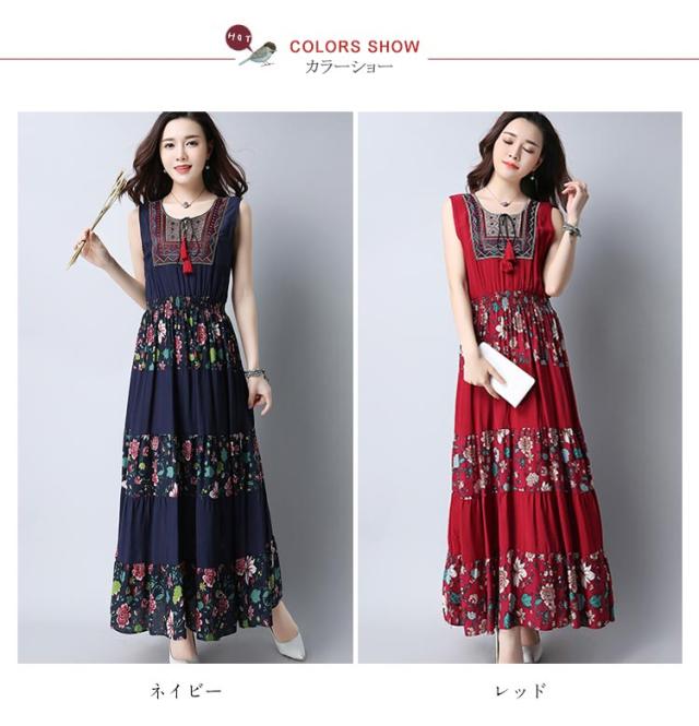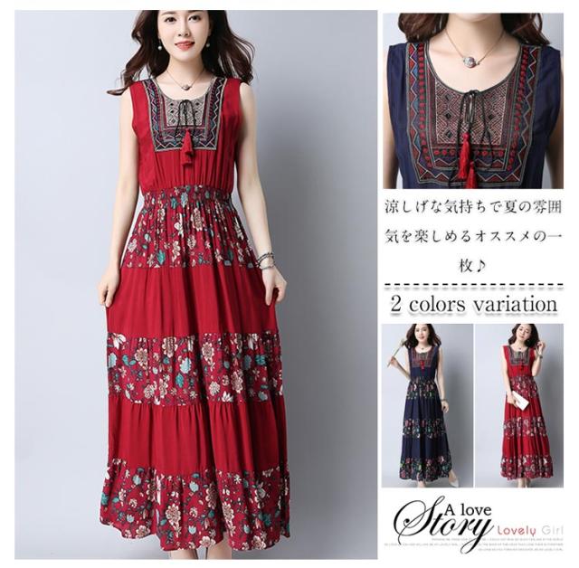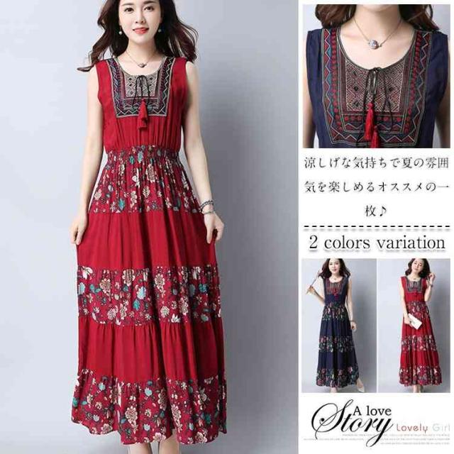 ワンピース レディース マキシワンピース ノースリーブ ボヘミアン 花柄 民族風 チェック柄 エスニック 森ガール風 マキシ ゆったり 夏 2018春新作