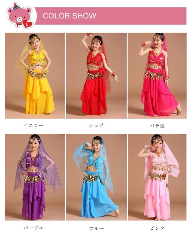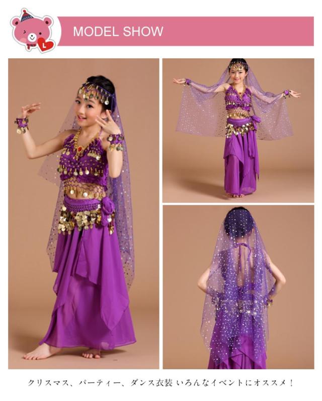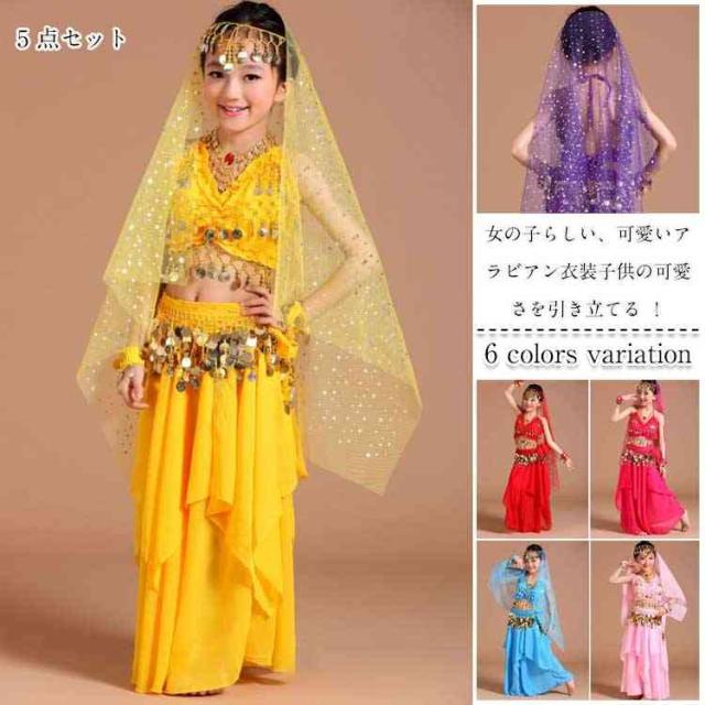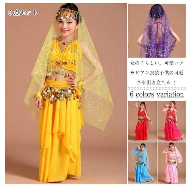 5点セット ベリーダンスセット アラビアン衣装 女の子 アラジン 子供服 アラジンコス スパンコール ダンス衣装 コスプレ 全身セット 上下セット