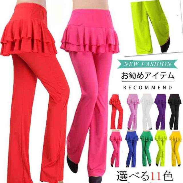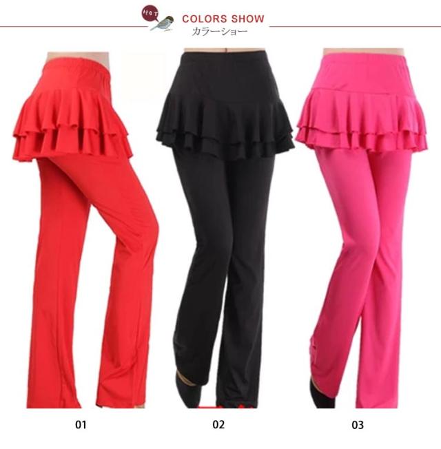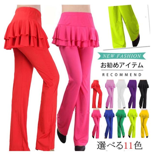 ヨガウェア スカート付きパンツ ロング ヨガパンツ フィットネス スポーツウエア ダンスウェア ヨガ服 ヨガ用品 練習服 無地 体操衣装 社交