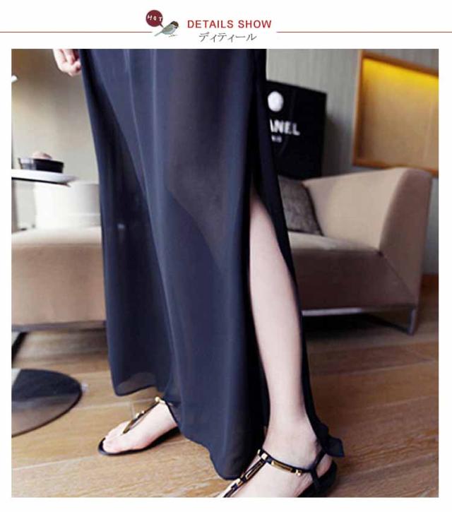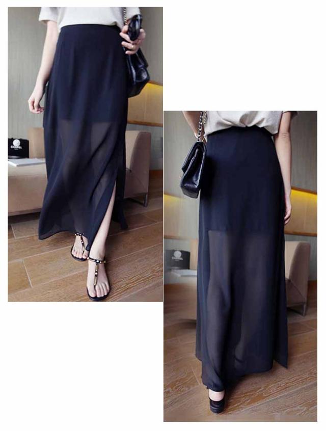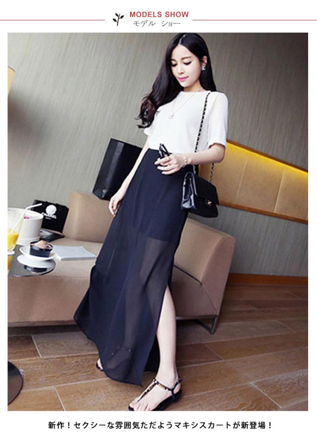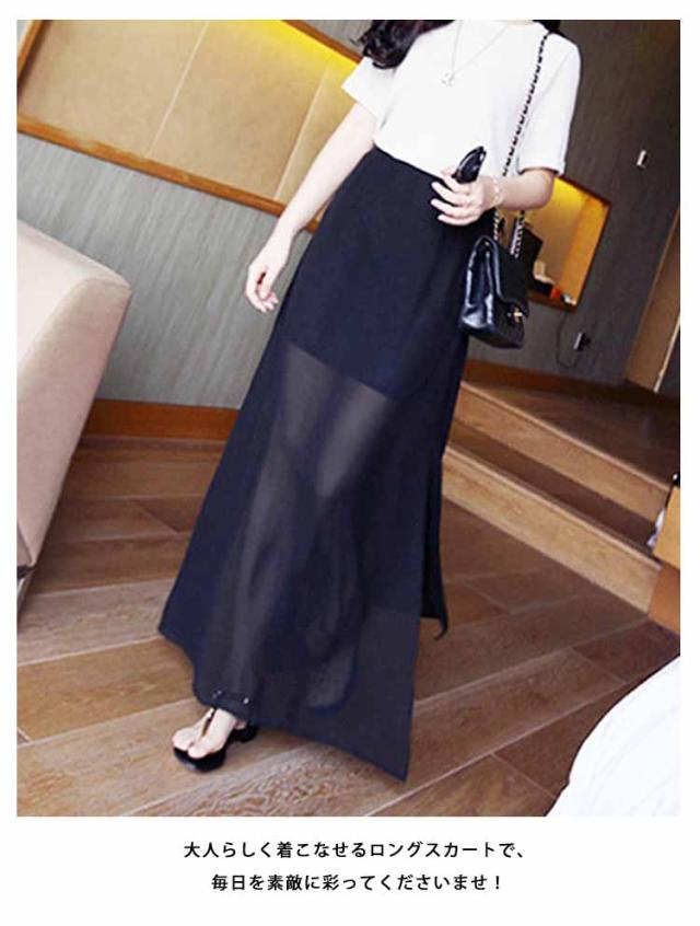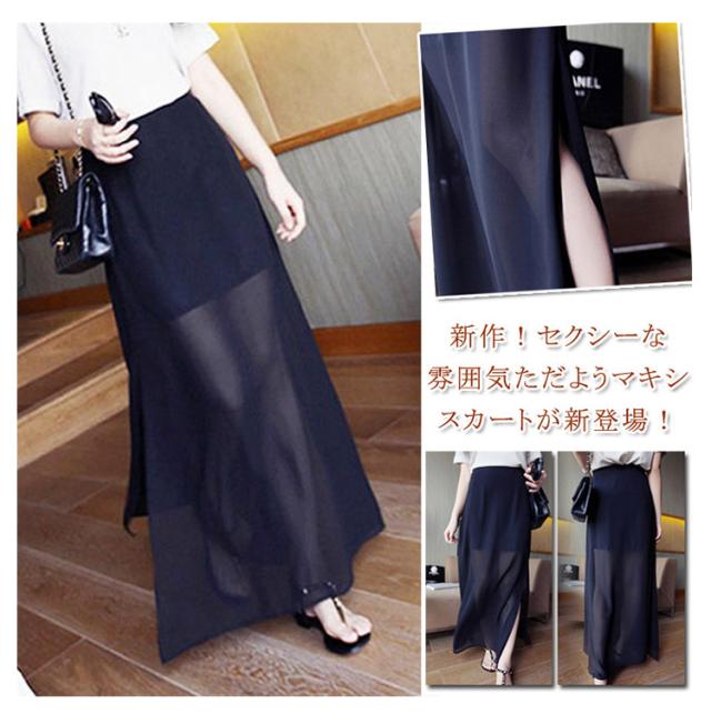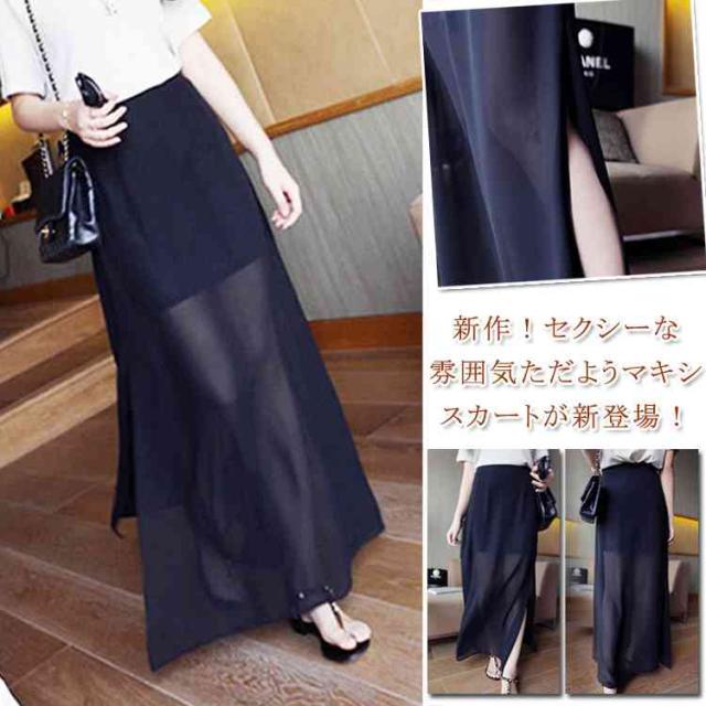マキシスカート ロングスカート シースルー スリット入りスカート 透け感 レディース 通勤 オフィス 2018春新作