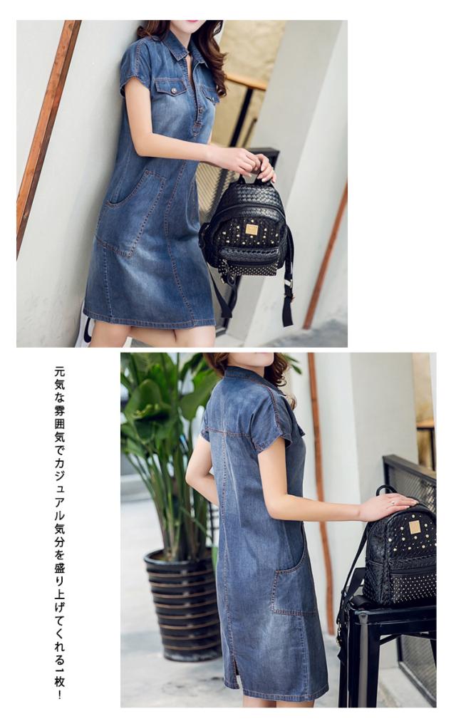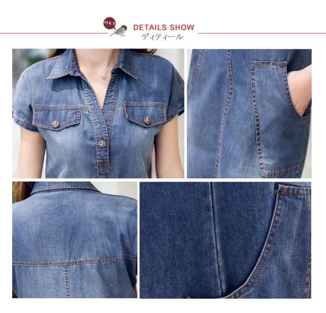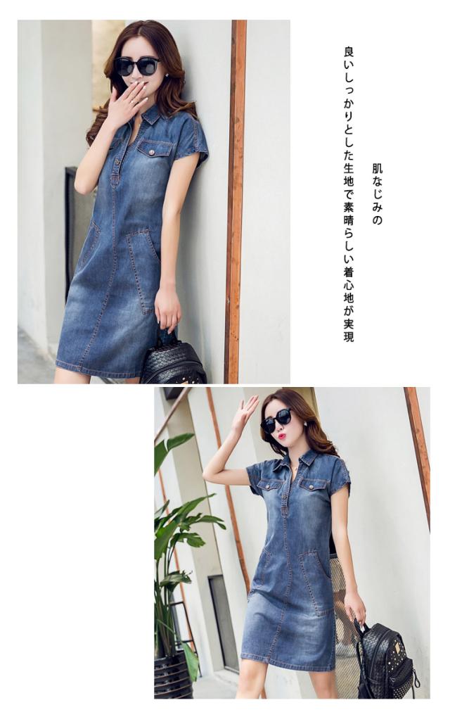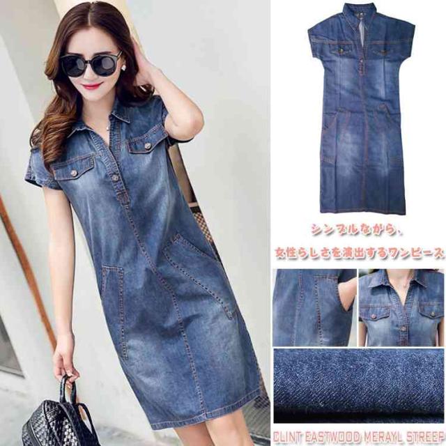 スキッパー デニム ワンピース ショート ヴィンテージ加工 カジュアルワンピース 半袖ワンピ 大きいサイズ サマーワンピ シンプル