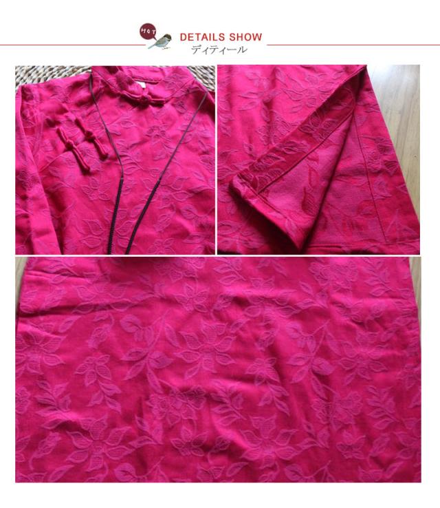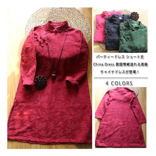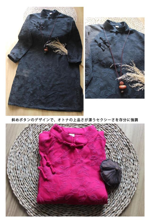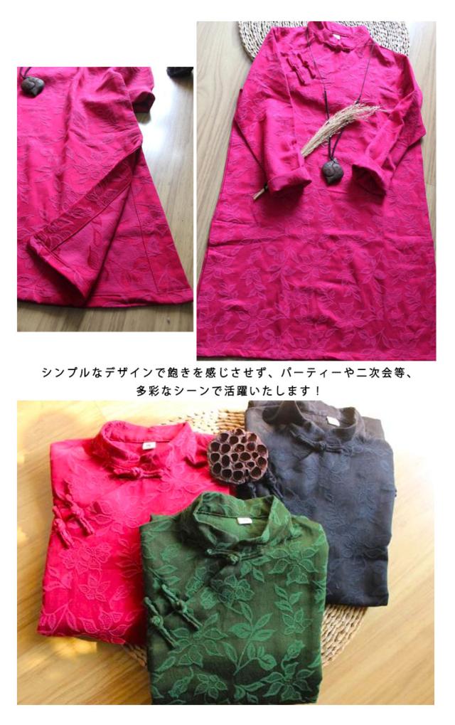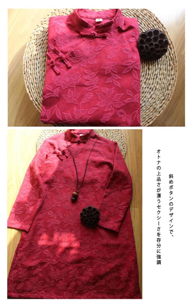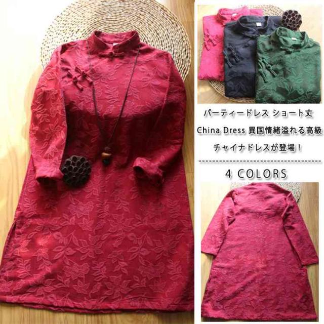 チャイナドレス 綿麻ワンピース ショート丈 ジャカード 斜めチャイナボタン 中国風ワンピース 民族風 リネン セクシー サイドスリット