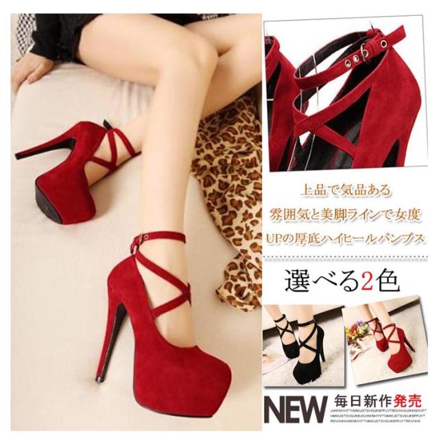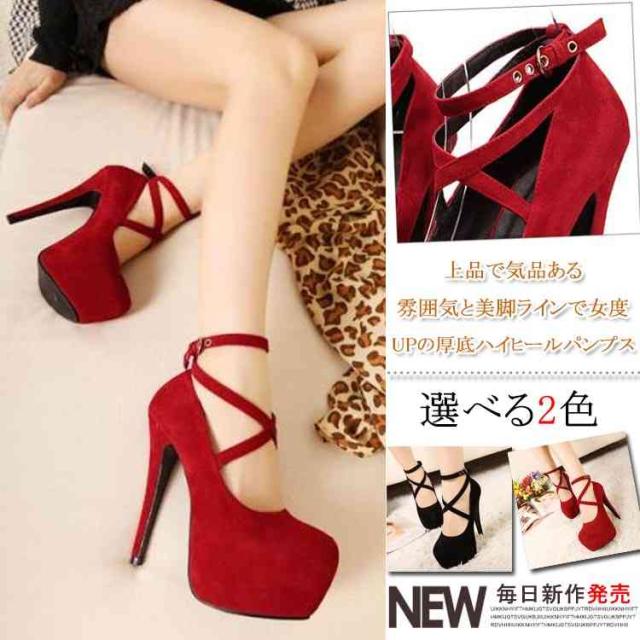 パンプス ハイヒール スエード ピンヒールパンプス 厚底パンプス 痛くない ストラップ