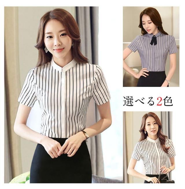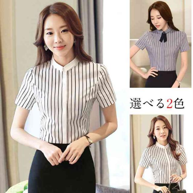ブラウス レディースシャツ シャツ ストライプ 半袖 レディースブラウス ビジネス 事務服 スーツインナー 小さいサイズ 大きいサイズ クールビズ