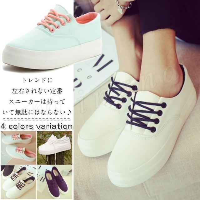 厚底スニーカー レディース ローカット ホワイト ブラック スカイブルー パステルカラー キャンバス 春秋 レースアップシューズ ズック靴 紐靴