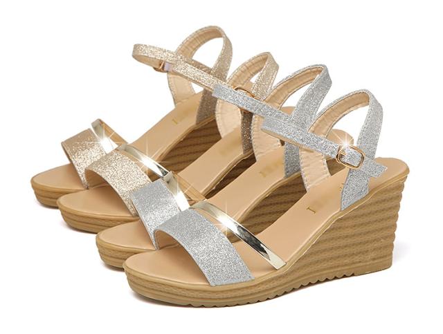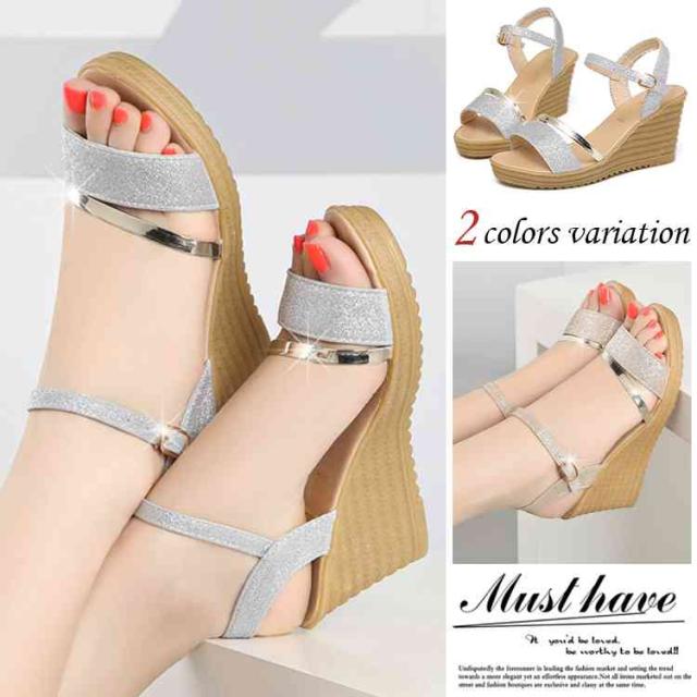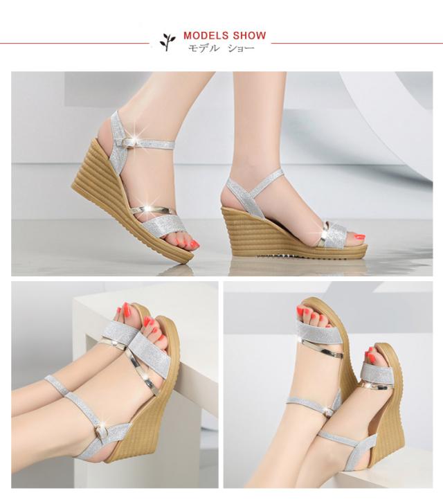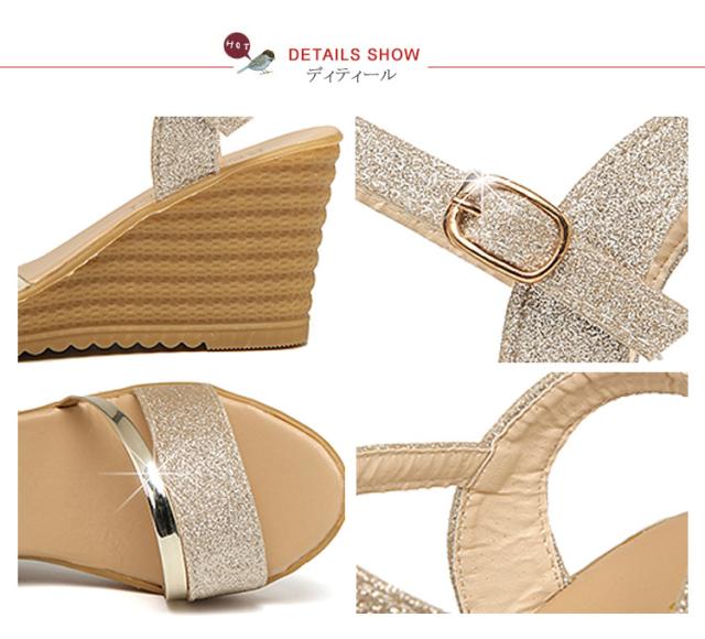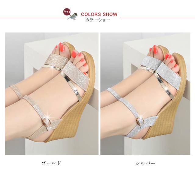 サンダル ウェッジソール レディース ウェッジサンダル 夏 厚底 ウェッジソール サンダル ラメ ストラップサンダル シューズ歩きやすい靴