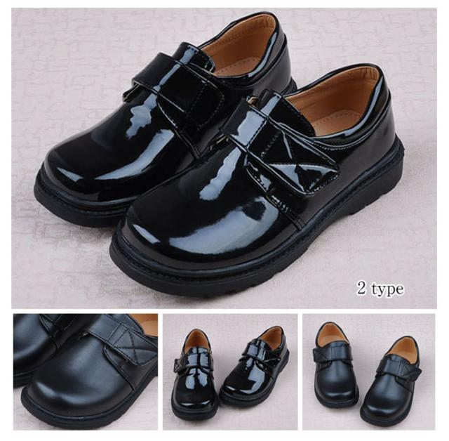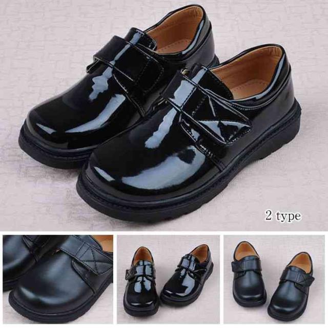 キッズ 入学式 靴 フォーマル 黒 男の子 靴 エナメル調 マジックテープ ブラック おしゃれ 子供 卒園式 新作