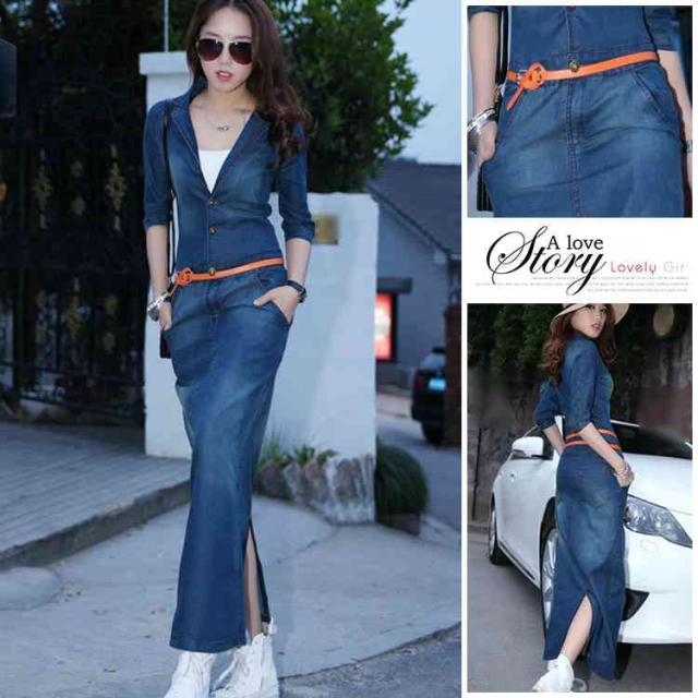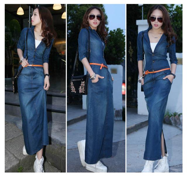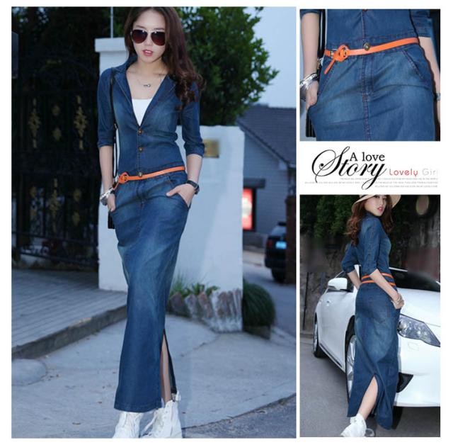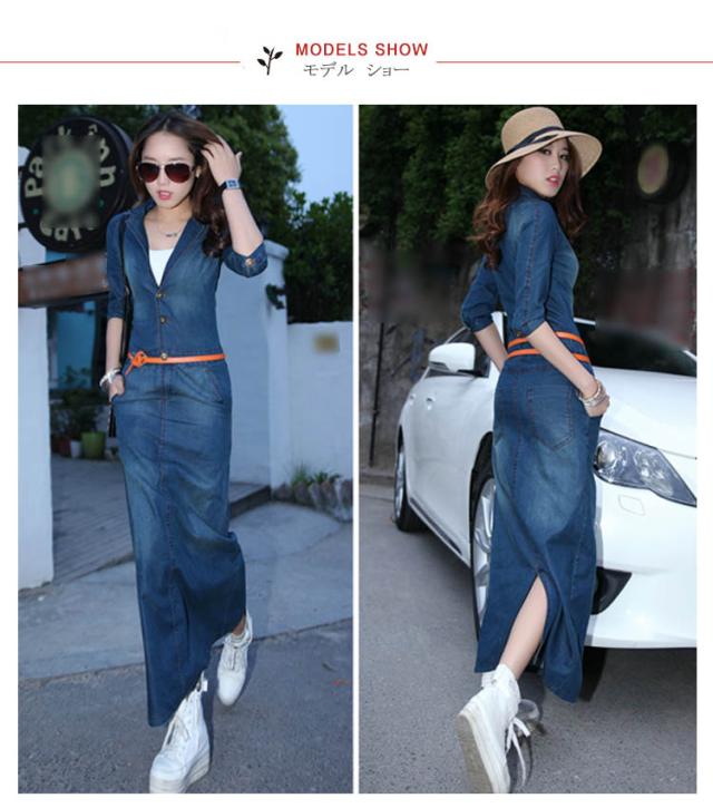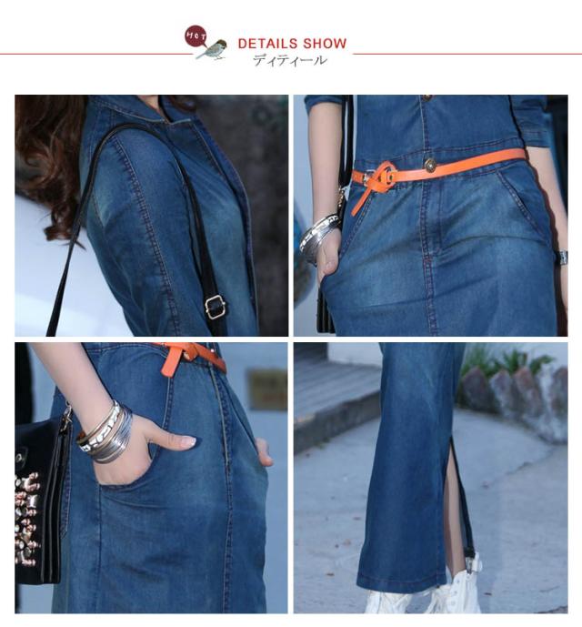 デニムワンピース 秋ワンピ 薄手 デニムシャツワンピース デニムワンピ シャツワンピ マキシワンピース カジュアルワンピ マキシ丈 ベルト付き