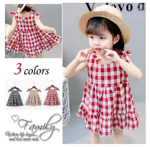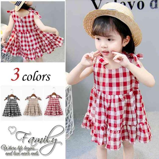 送料無料 キッズ ワンピース ノースリーブ チェック チェック柄 ギンガムチェック スカート りぼん リボン フリル 女の子 ガール 子供 子供服 こども 子ども 夏 新作