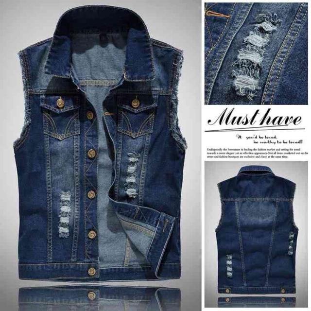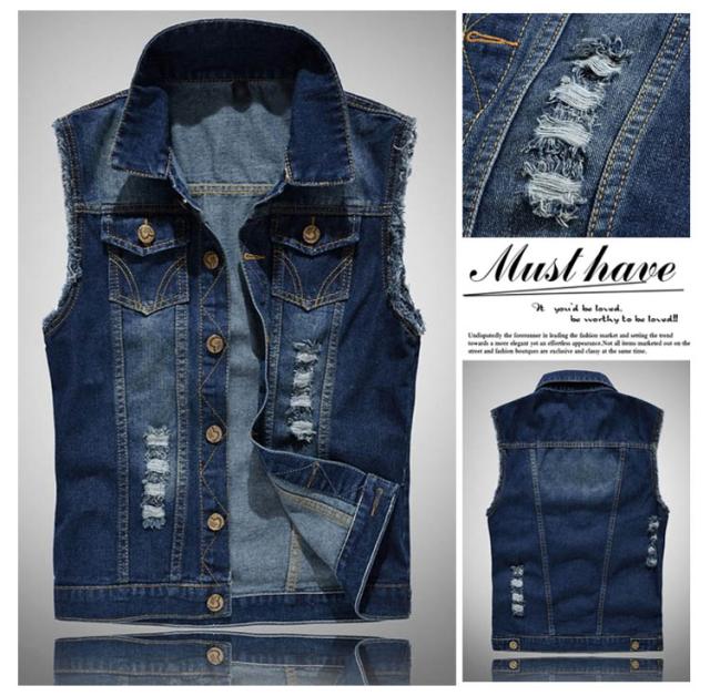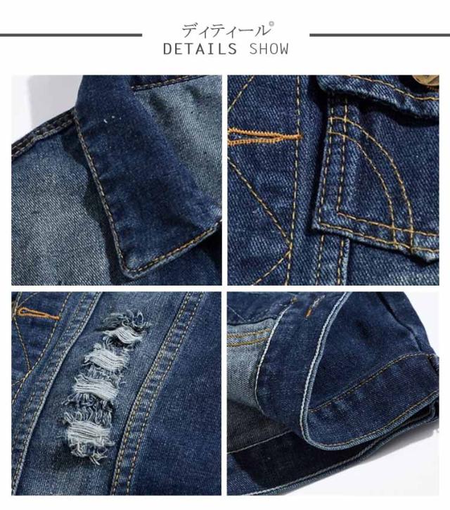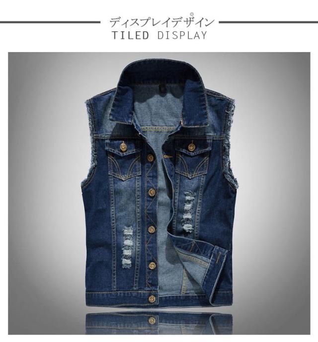 ベスト デニムベスト メンズ ジレメンズ デニム チョッキ お兄系ジレ デニムベスト メンズ ダメージ加工 個性