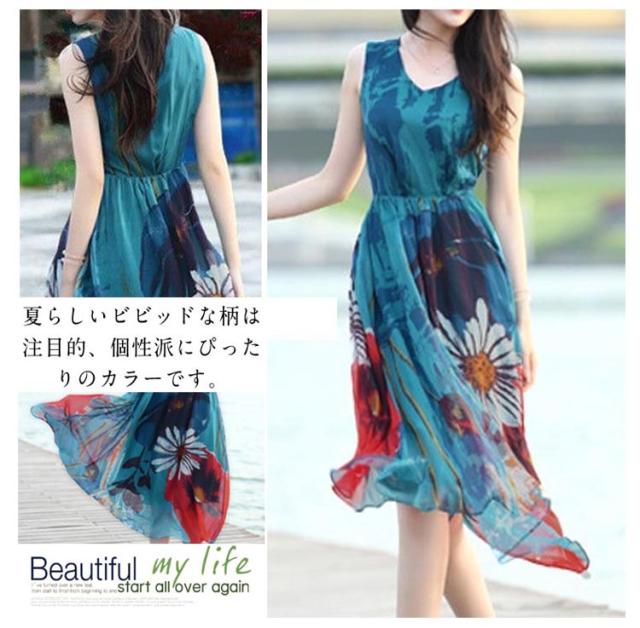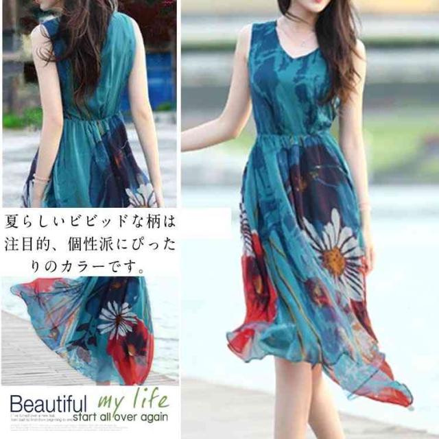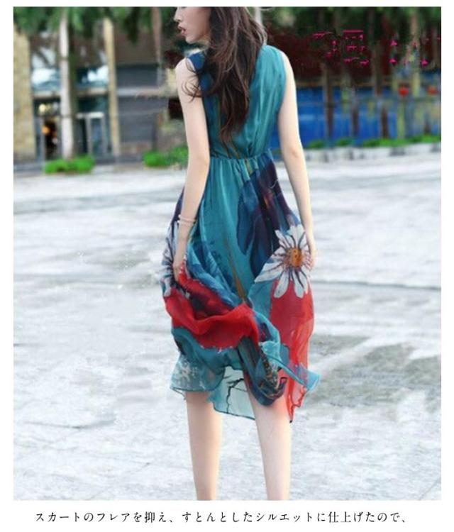 リゾートマキシワンピース リゾートワンピース ハワイ ワンピ ロング丈 花柄 シフォン ノースリーブ リゾートワンピース ビーチ 海 ボヘミアン
