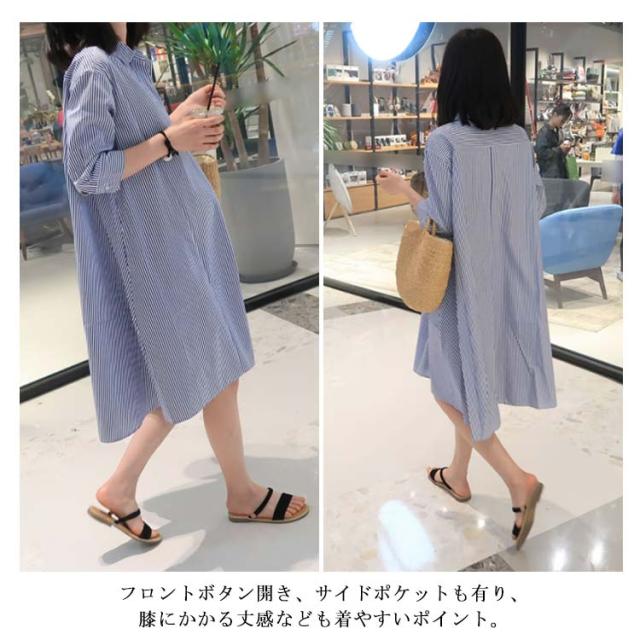 マタニティワンピース ストライプ柄 シャツワンピース ワンピース マタニティ マタニティウエア 夏ワンピース aライン 妊娠用 産前産後 カジュアル 通勤 春夏