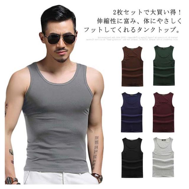 | 2枚セットで大買い得!伸縮性に富み、体にやさしくフットしてくれるタンクトップ。 肌に直接触れるタンクトップだからこそ、やわらかな着心地が大切なポイント! シンプル無地のカラータンクだから、シャツやロンTのインナーに合わせてみたり、狙ってちょっとチラ魅せもカンペキ! 1枚で着れば、男らしくワイルド美! インナーとしても大活躍のアイテムなので、色んなスタイルに万能にコーデOK。 何枚あっても使えるタンクトップは、気分やスタイルに合わせて、また洗い替えに色違いで欲しいアイテムです。 | |