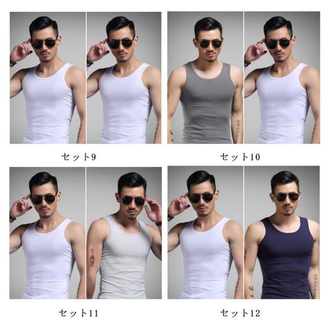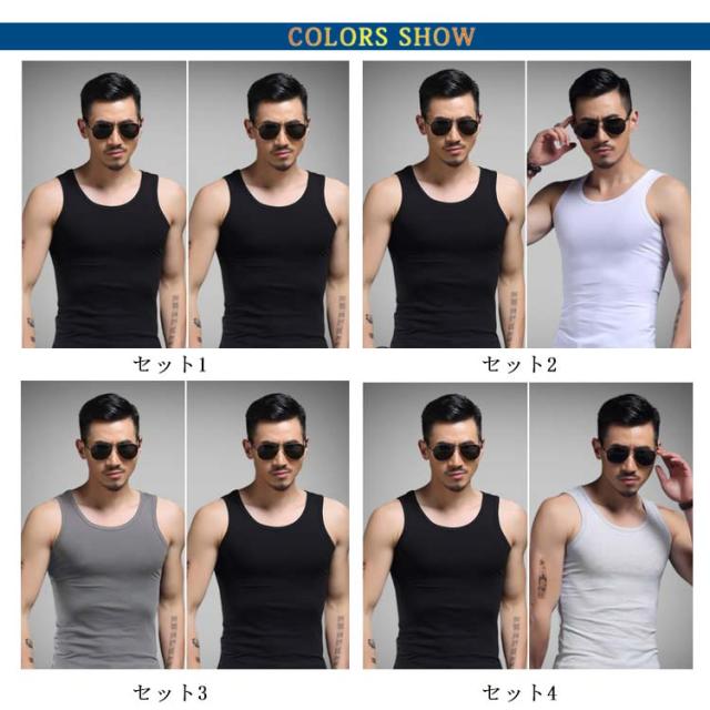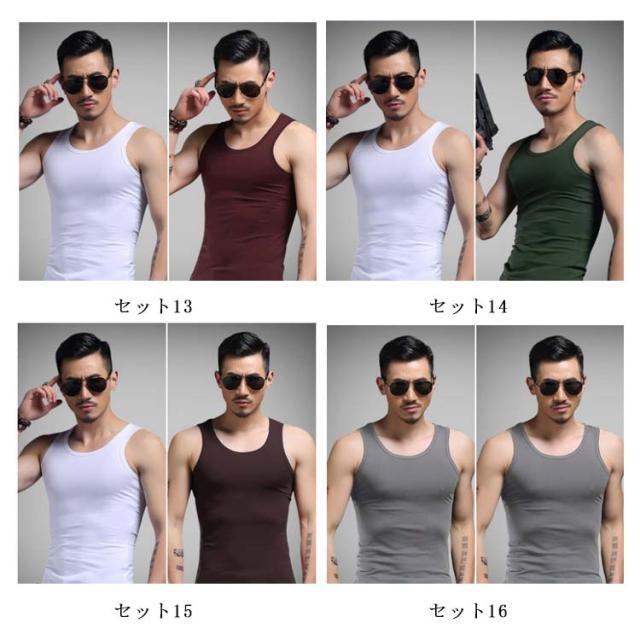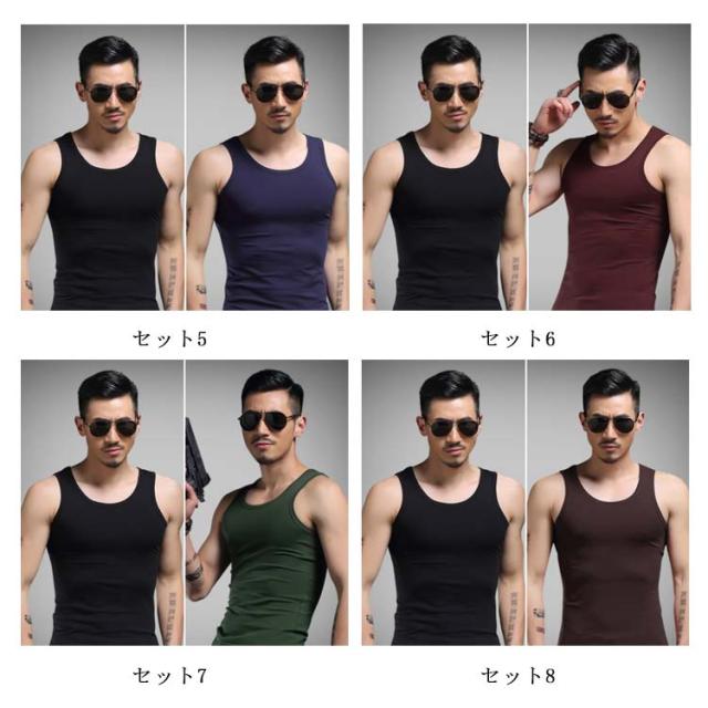 2枚セット タンクトップ メンズ Uネック インナー 男性下着 メンズ下着 Uネックタンクトップ 無地インナー メンズタンクトップ フィットネス スリム タイト シンプル 無地 夏服 夏物
