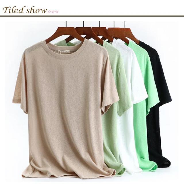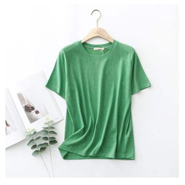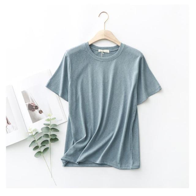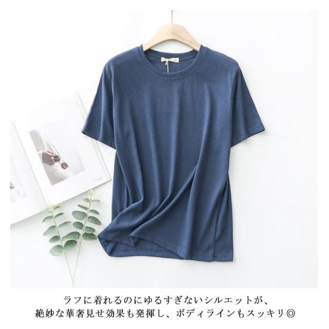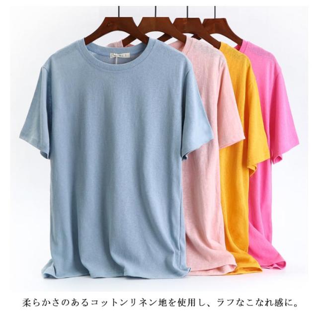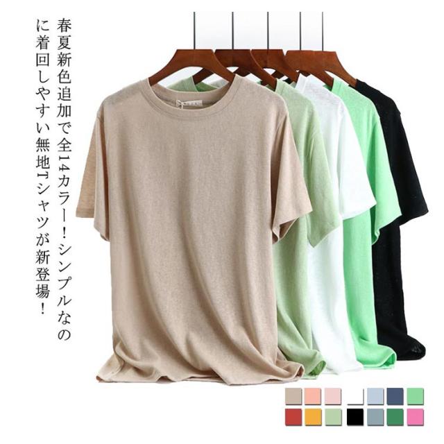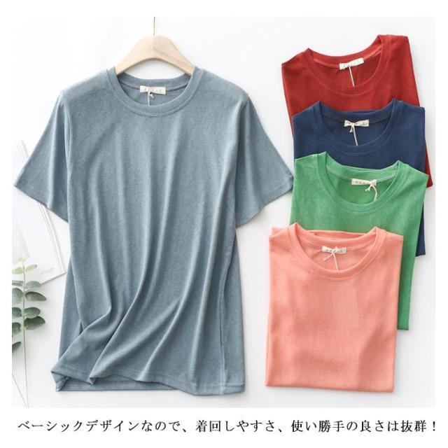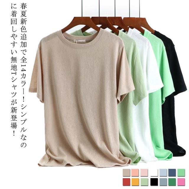 春夏新色追加で全14カラー!麻混Tシャツ レディース 半袖tシャツ tシャツ トップス カットソー 無地Tシャツ ベーシックTシャツ 麻混 綿麻 ラウンドネック シンプル 無地 夏 夏物