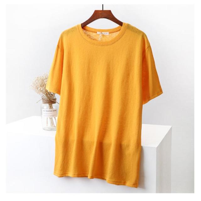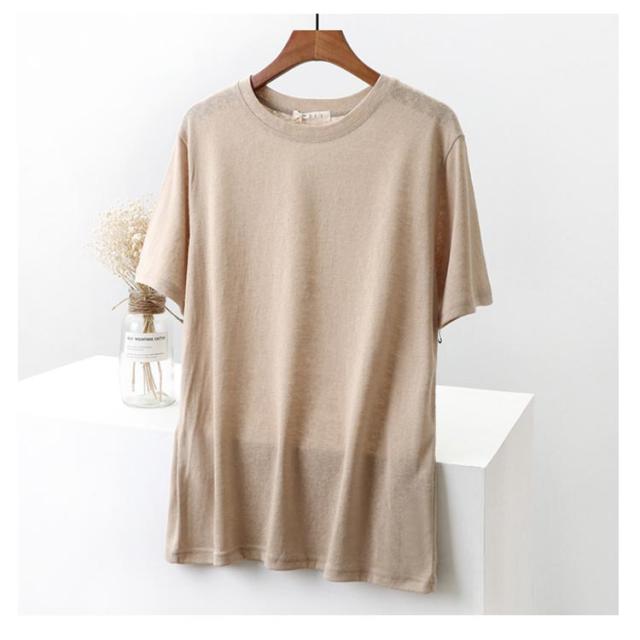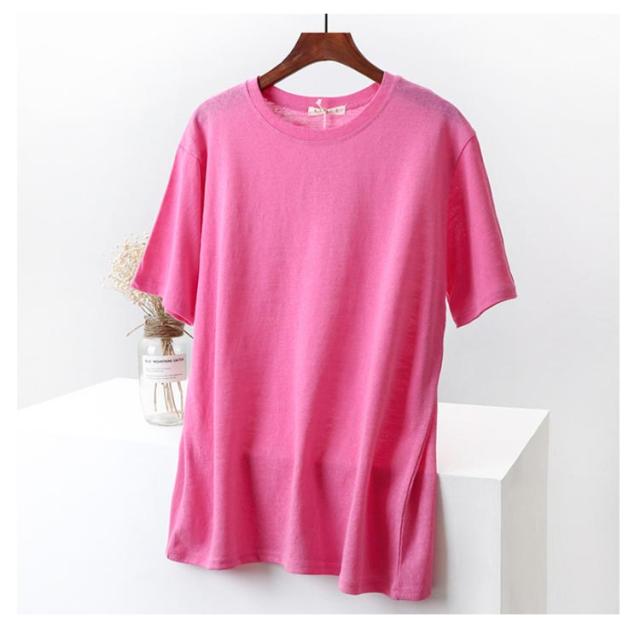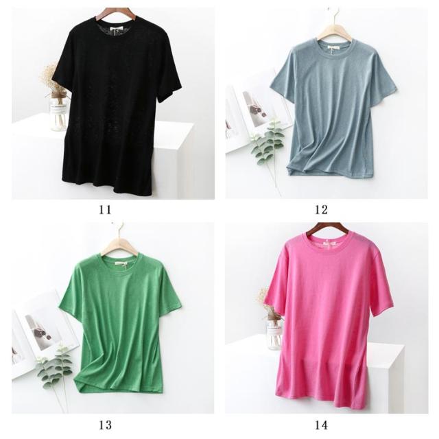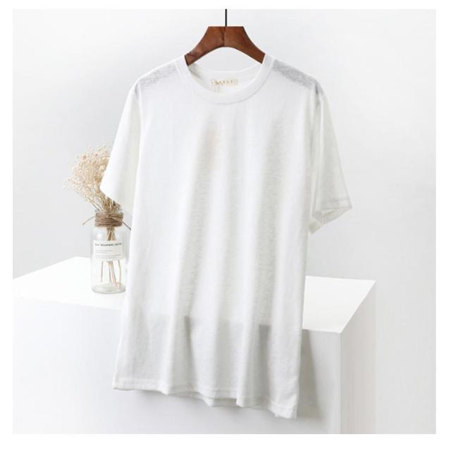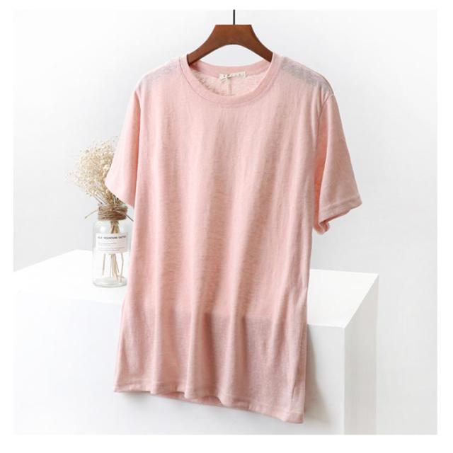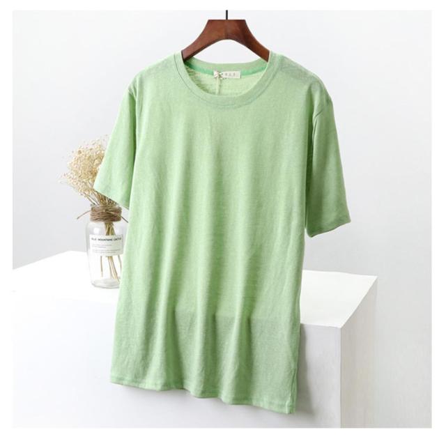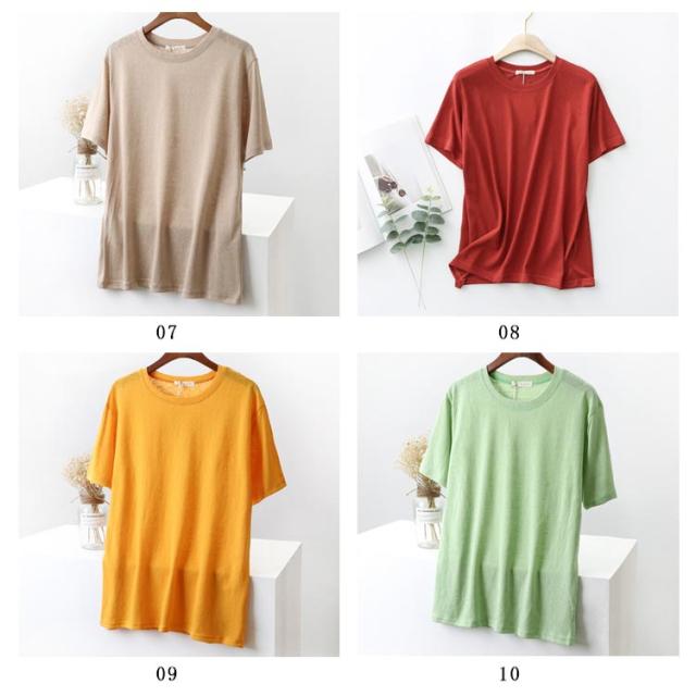 春夏新色追加で全14カラー!麻混Tシャツ レディース 半袖tシャツ tシャツ トップス カットソー 無地Tシャツ ベーシックTシャツ 麻混 綿麻 ラウンドネック シンプル 無地 夏 夏物