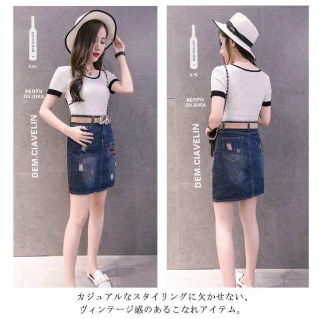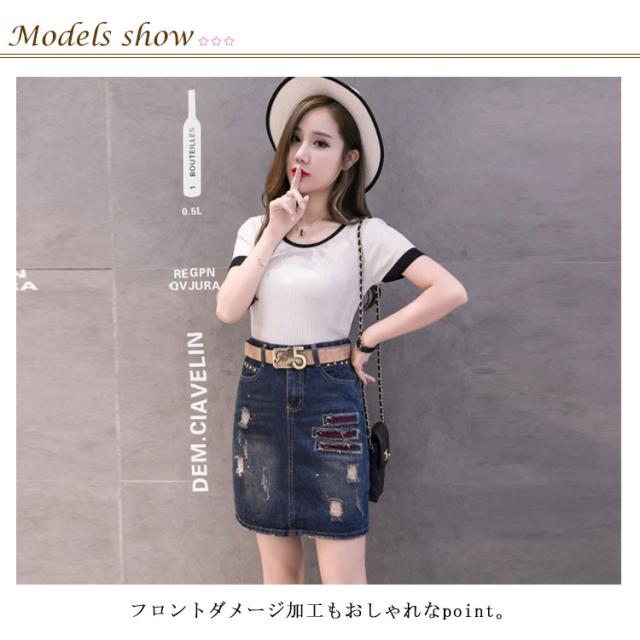 S−5XLサイズ!ダメージ加工 デニムスカート 膝上丈 スカート ミニスカート デニムミニスカート ハイウエスト コンパクト 切り替え 大きサイズ 春夏 おしゃれ 可愛い