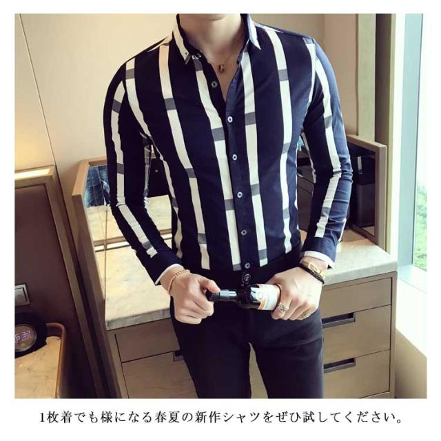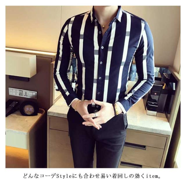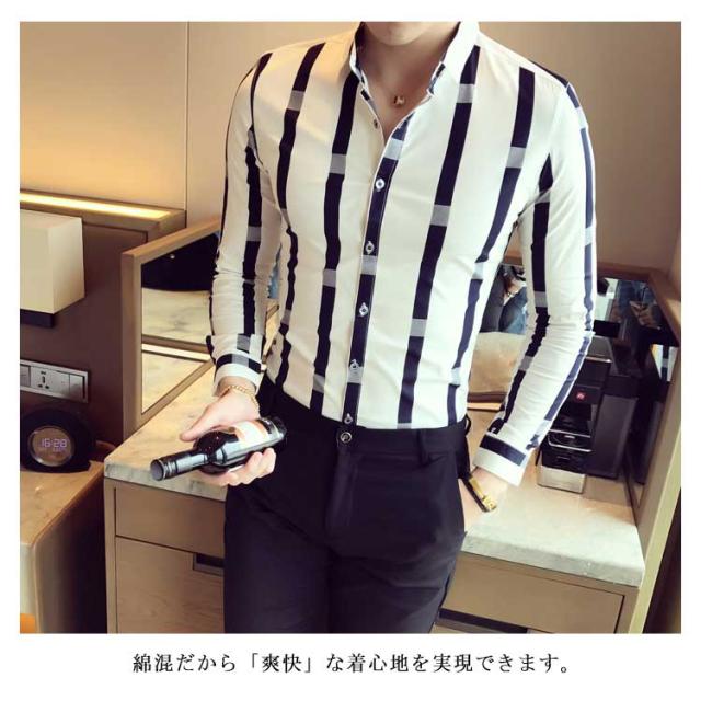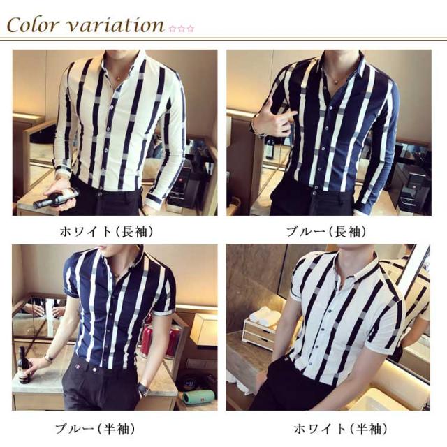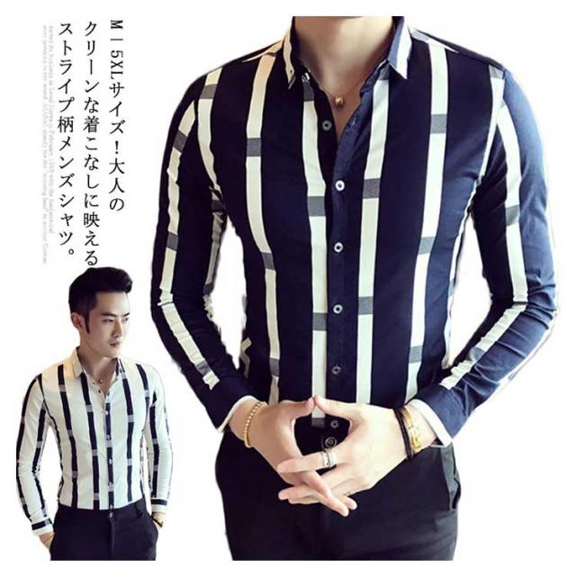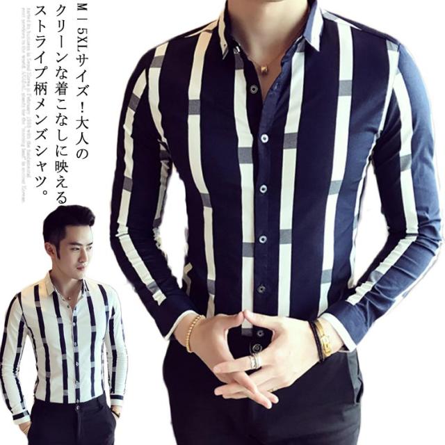 M−5XLサイズ!メンズシャツ ストライプ柄 シャツ メンズ トップス 長袖 半袖 カジュアルシャツ 太めストライプ 白 細身 ビジネス メンズファッション 春 夏 秋 大きサイズ