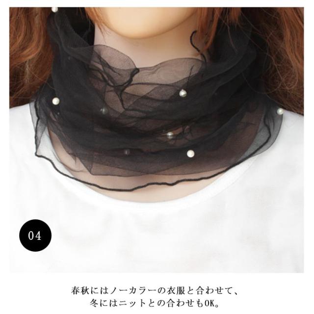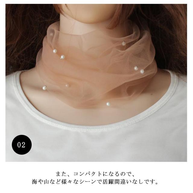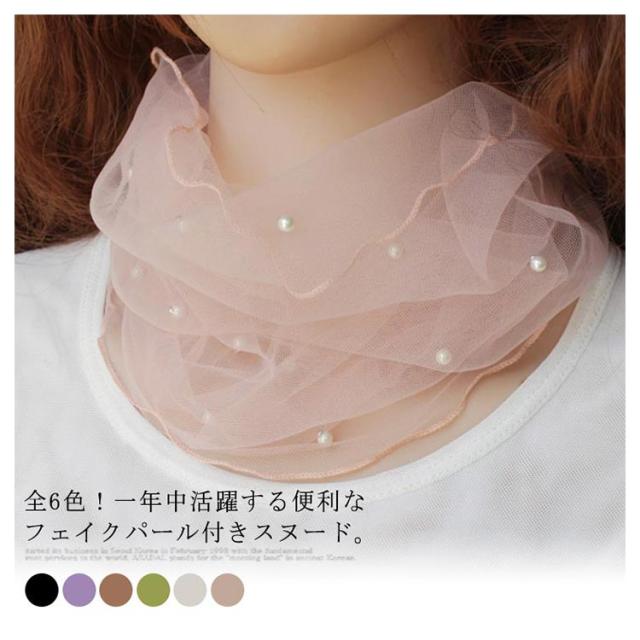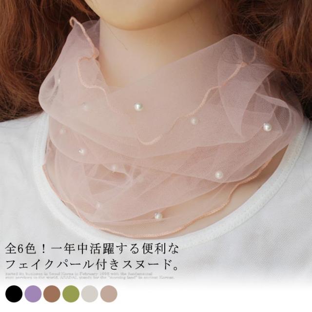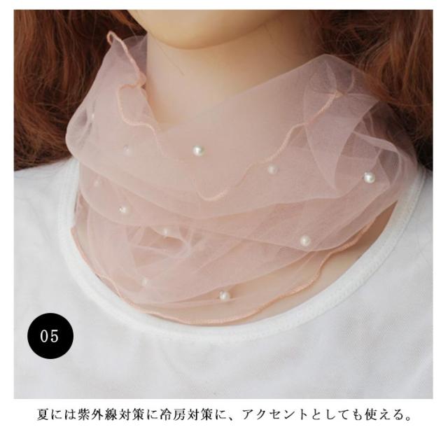 全6色!スヌード 夏用 マフラー 紫外線対策 ネックアクセサリー ネックウォーマー 春夏 夏 アクセサリー ファッション小物 フェイクパール おしゃれ 可愛い 薄手