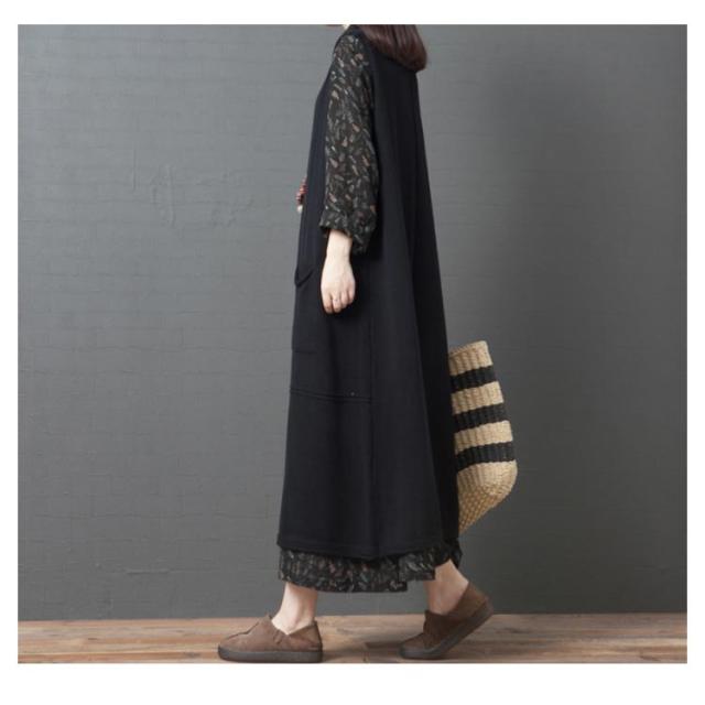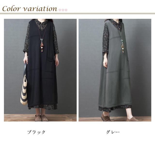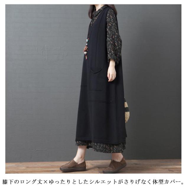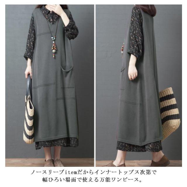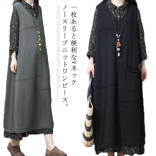 ノースリーブニットワンピース ニットワンピース ロングワンピース ノースリーブ 袖なし ワンピース Vネック カジュアルワンピース aライン ゆったり 体型カバー シンプル 無地 体型カバー