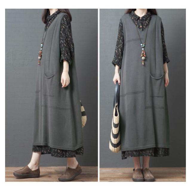 | 一枚あると便利なVネックノースリーブニットワンピース。 冬の定番であり人気の高い綿混ニットソー生地を使用しました。 広がったVネックデザインですっきりとした顔周りらしさを演出してくれます。 フロントワンポケット付きもさりげないポイント。 膝下のロング丈×ゆったりとしたシルエットがさりげなく体型カバー。 ノースリーブitemだからインナートップス次第で幅ひろい場面で使える万能ワンピース。 | |