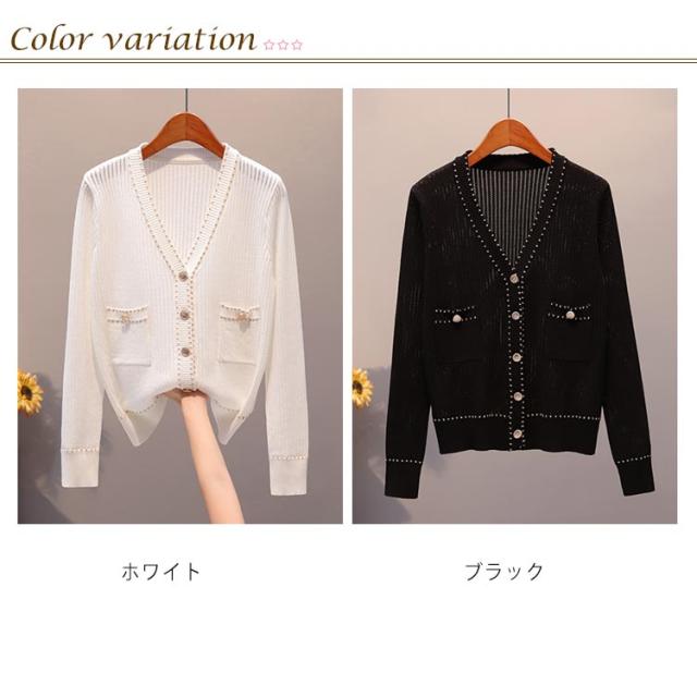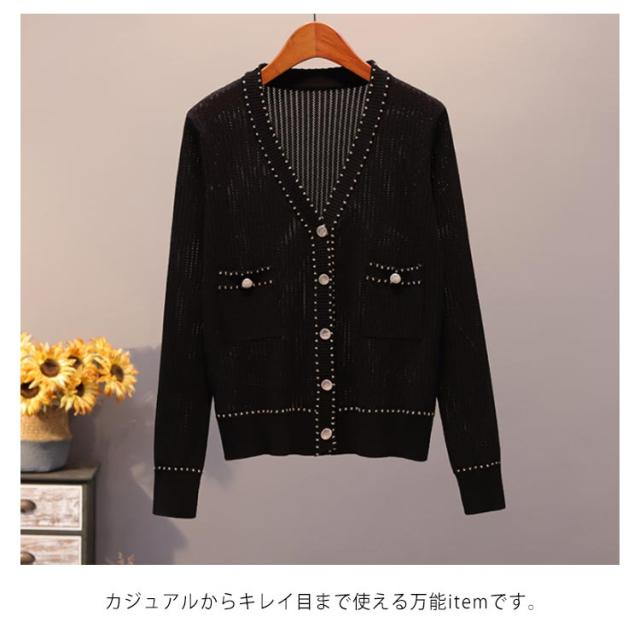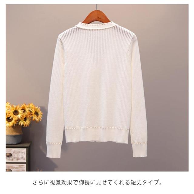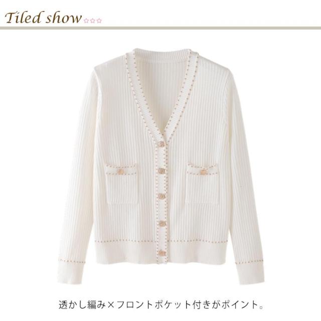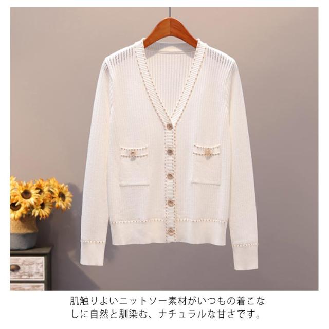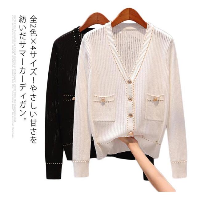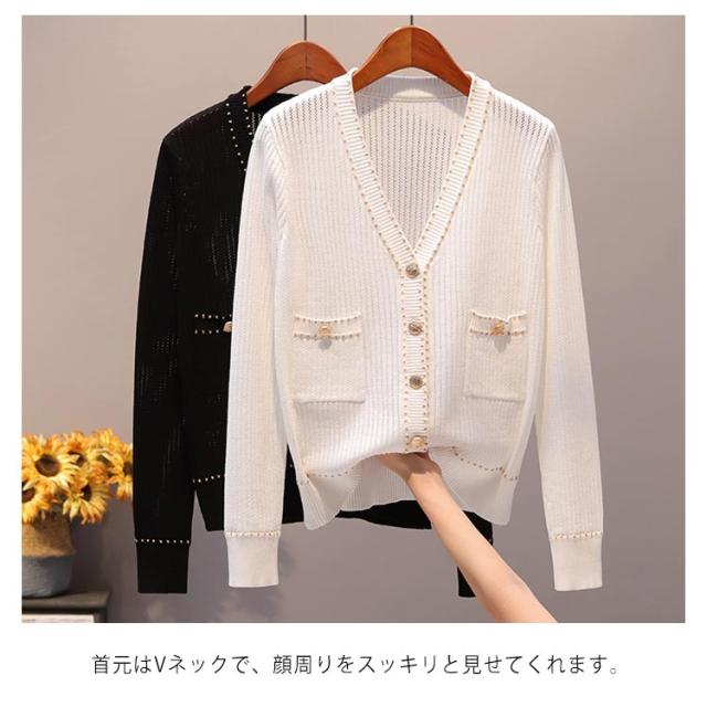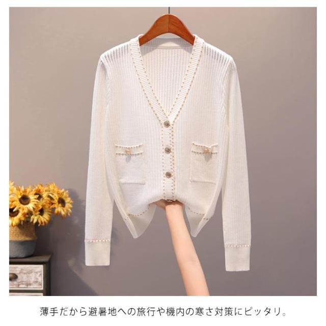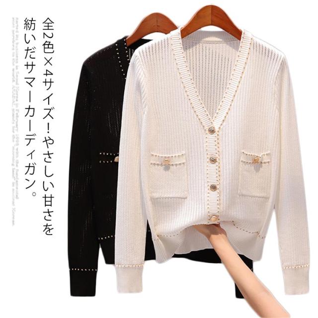 全2色×4サイズ!透かし編みカーディガン ニットカーディガン レディース サマーカーディガン Vネック ニット カーディガン ポケット付き 長袖 ショート丈 薄手 春 夏 秋