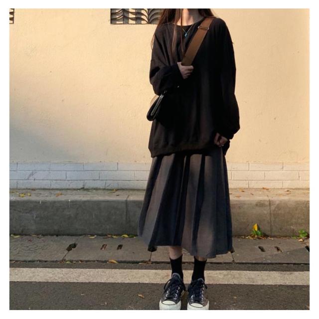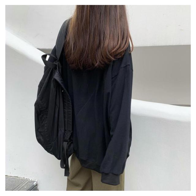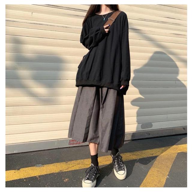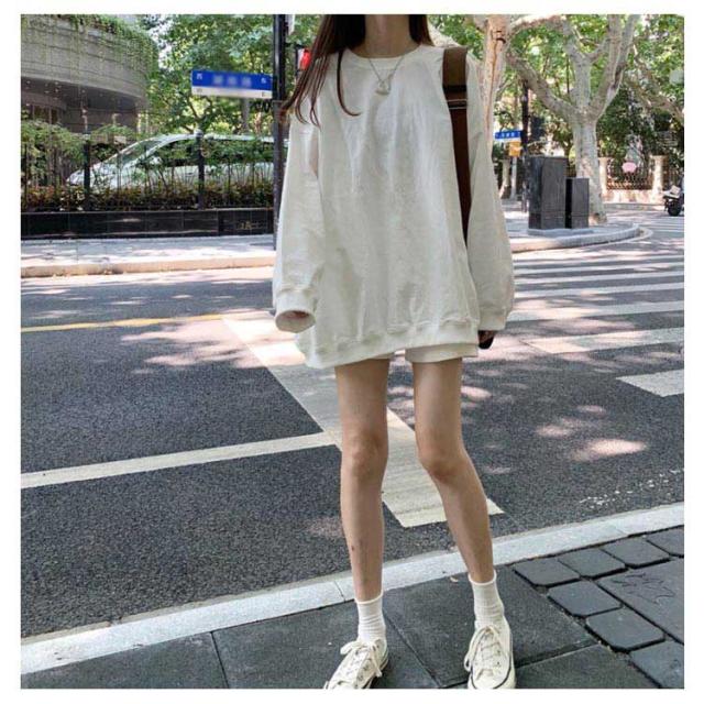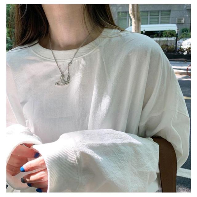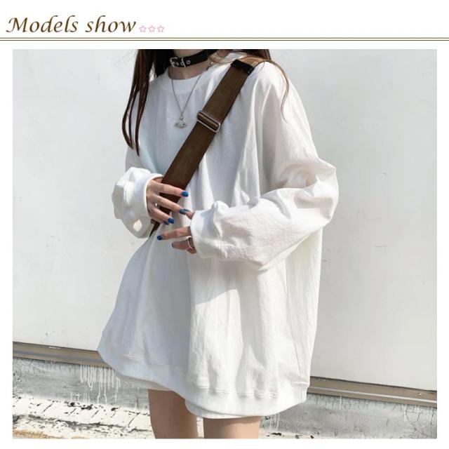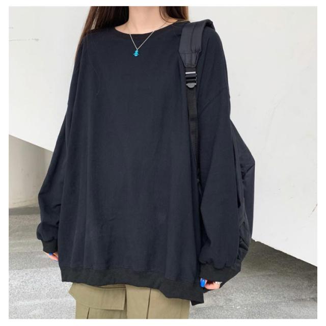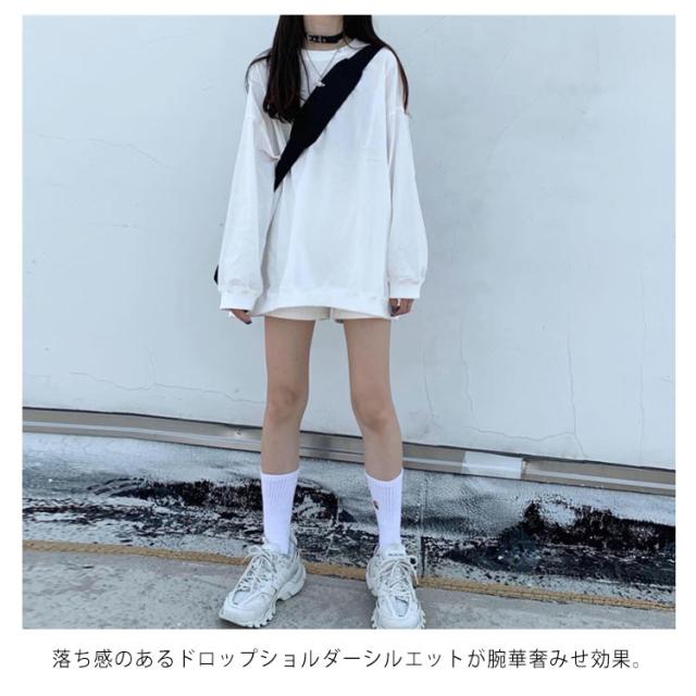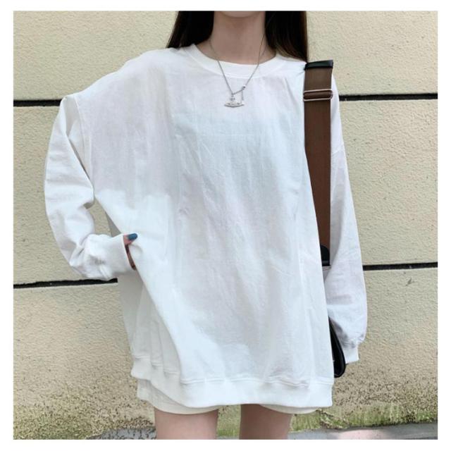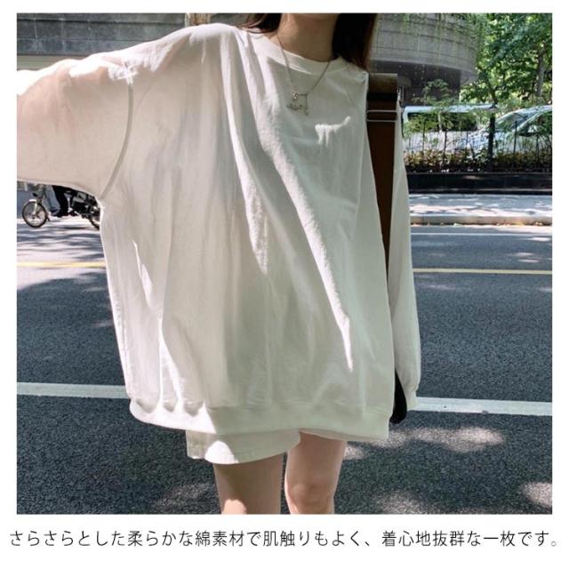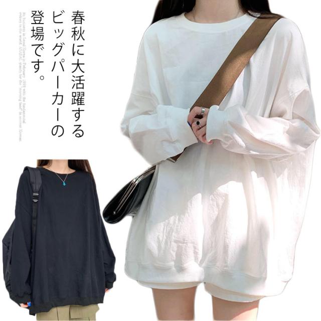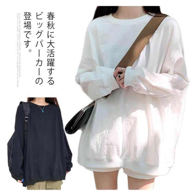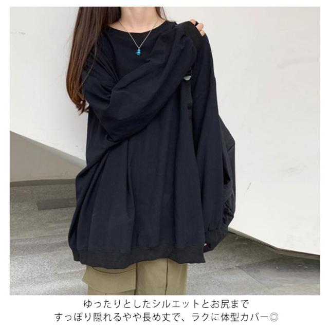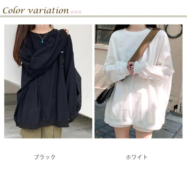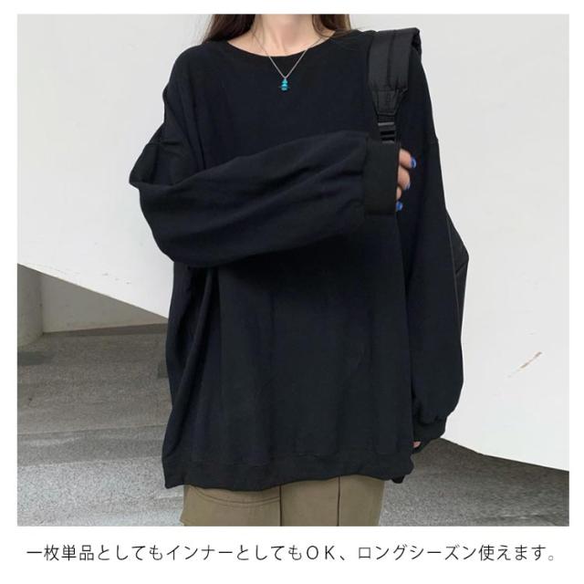 ロングトレーナ ビッグシルエット Tシャツ 長袖 プルオーバー トレーナー ビッグTシャツ ロング丈 体型カバー レイヤード カジュアル 大きサイズ 無地 ホワイト ブラック