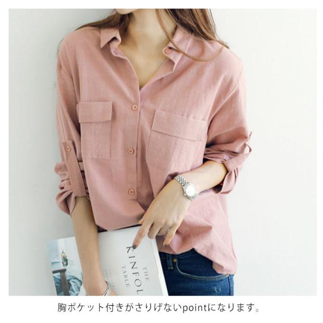シャツ レディース ビッグシルエット ロングシャツ ビッグシャツ ブラウス トップス 胸ポケット付き 長袖シャツ カジュアルシャツ コットン 柔らかい 春 夏 秋 大きサイズ 無地
