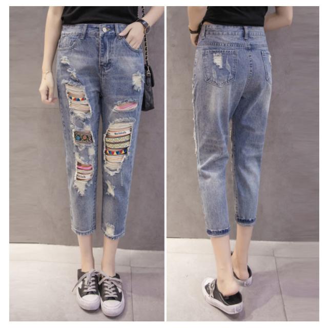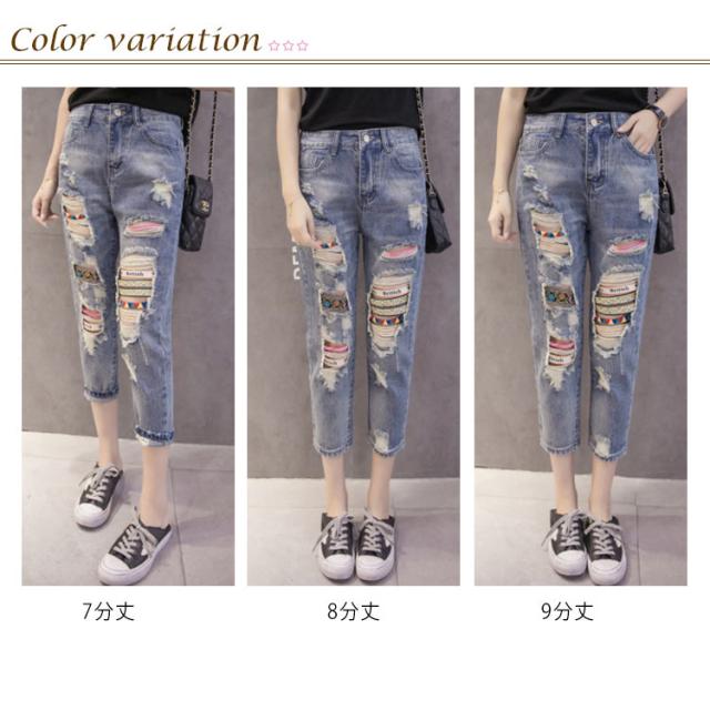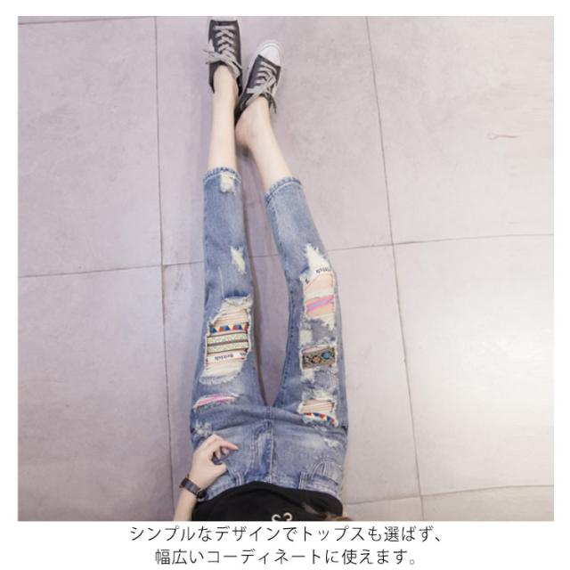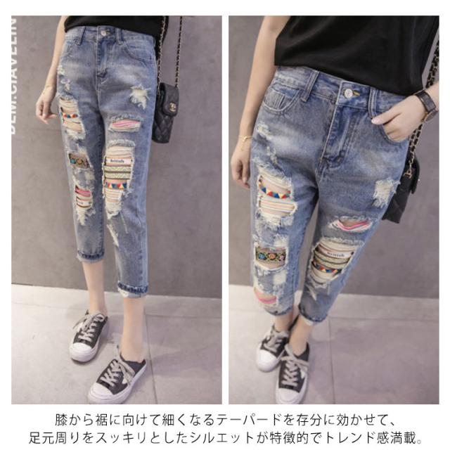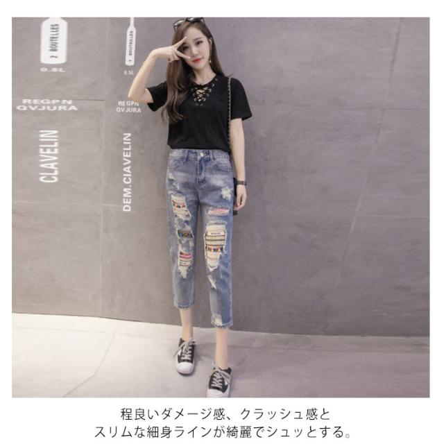 ダメージジーンズ デニムパンツ ダメージ加工 7分丈 8分丈 9分丈 ジーンズ デニム ボトムス クラッシュ クロップド丈 春夏 おしゃれ レディース