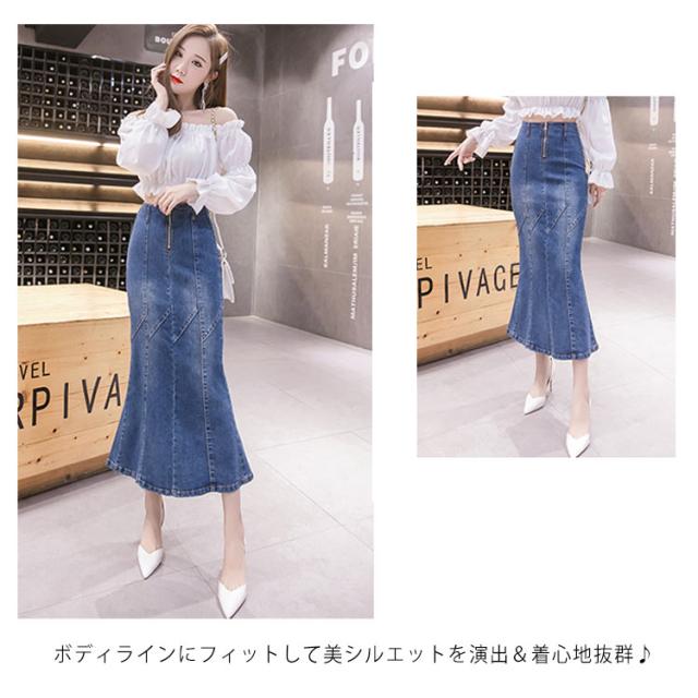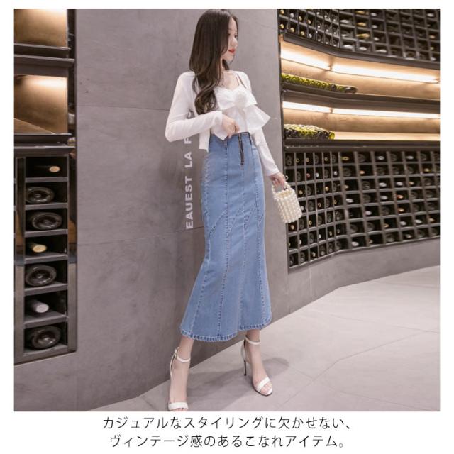 ハイウエストデニムスカート マーメイドシルエット デニムスカート デニム タイトスカート ロングスカート ロングデニムスカート デニムロングスカート タイト ロング丈 スカート 色落ち加工