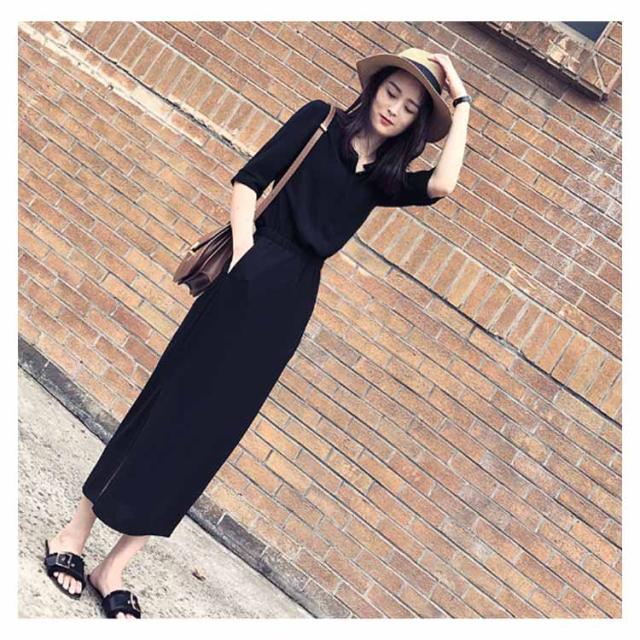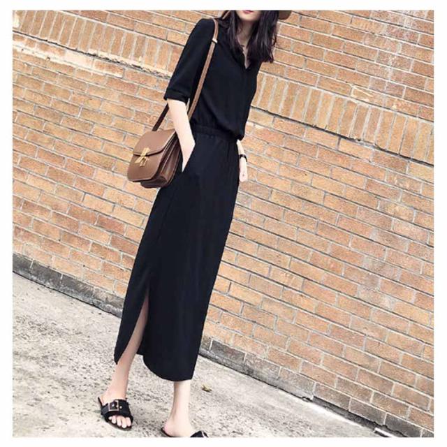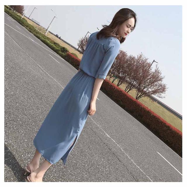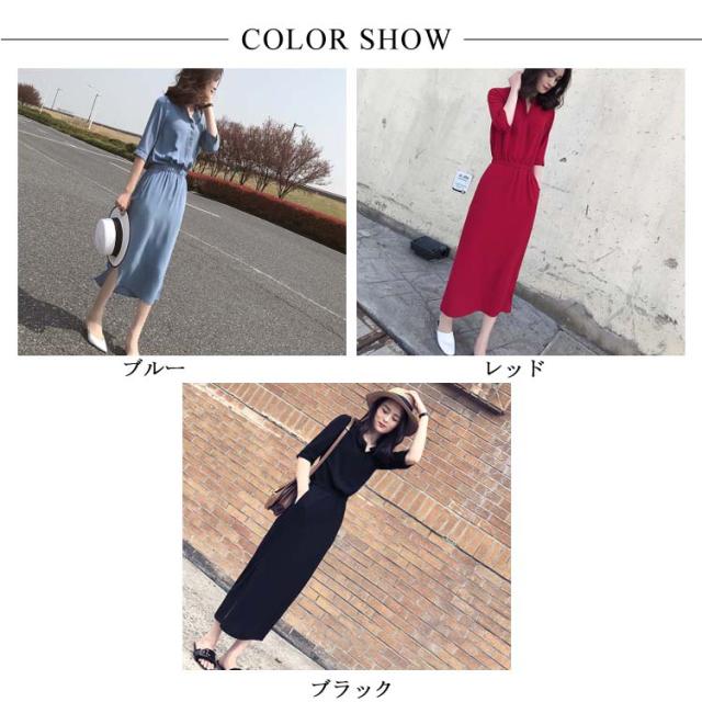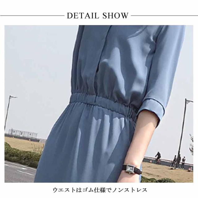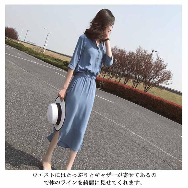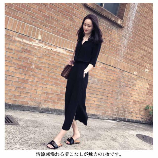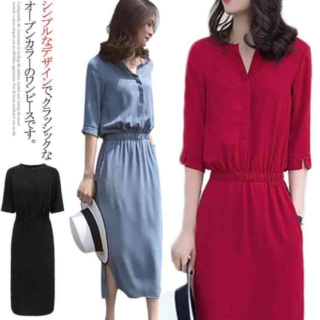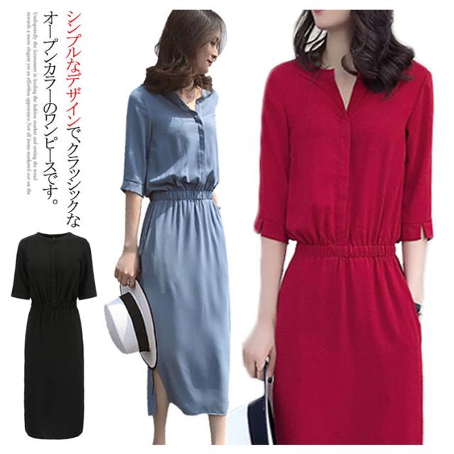 シャツワンピース スリットワンピース レディース ロング丈 無地 スリット ワンピース オープンカラー ハイウエスト エレガント シンプル