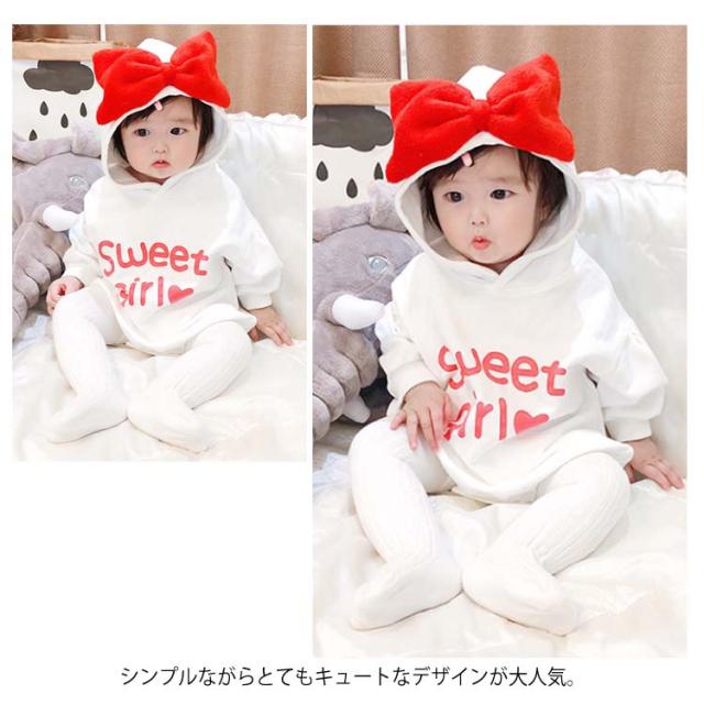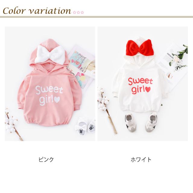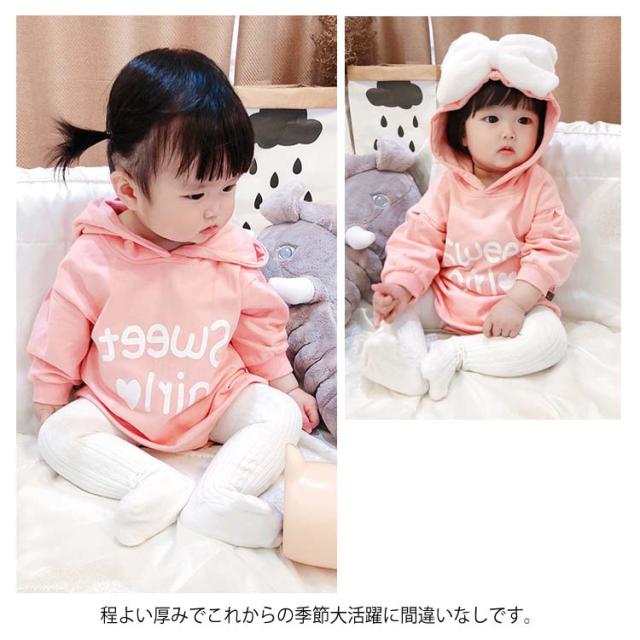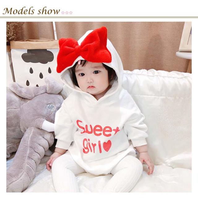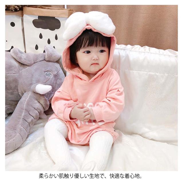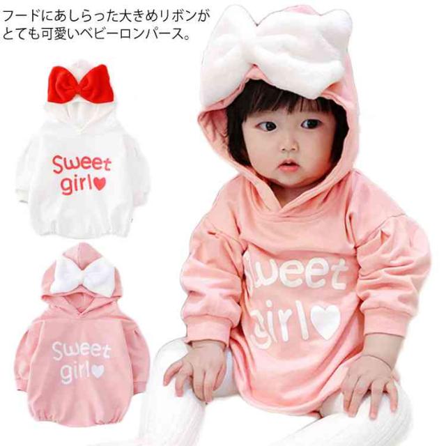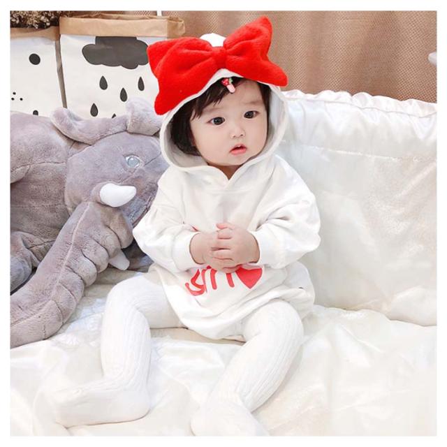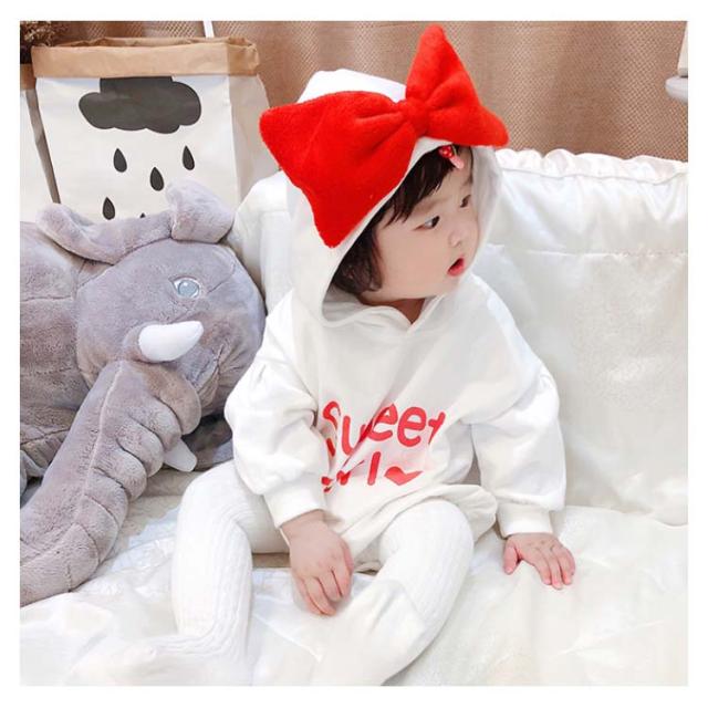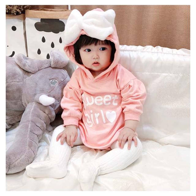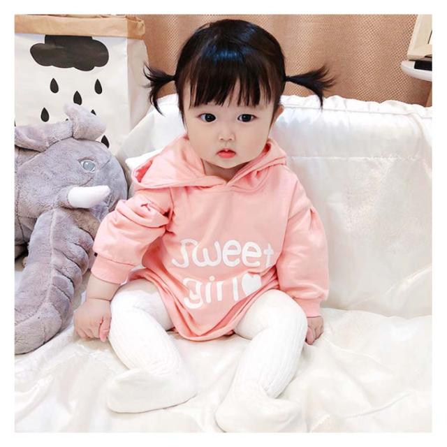 送料無料 ベビー服 長袖パーカー ロンパース ワンピース 赤ちゃん 秋冬 春 可愛い リボン オシャレ 英字プリント フード付き カッコイイ ファッション