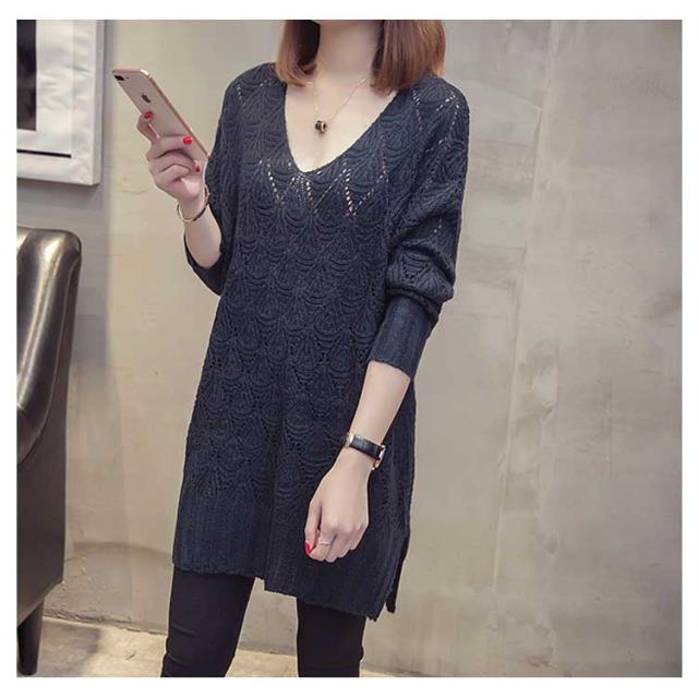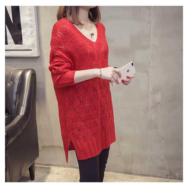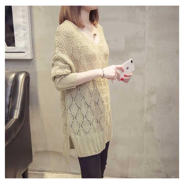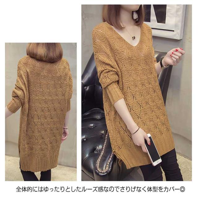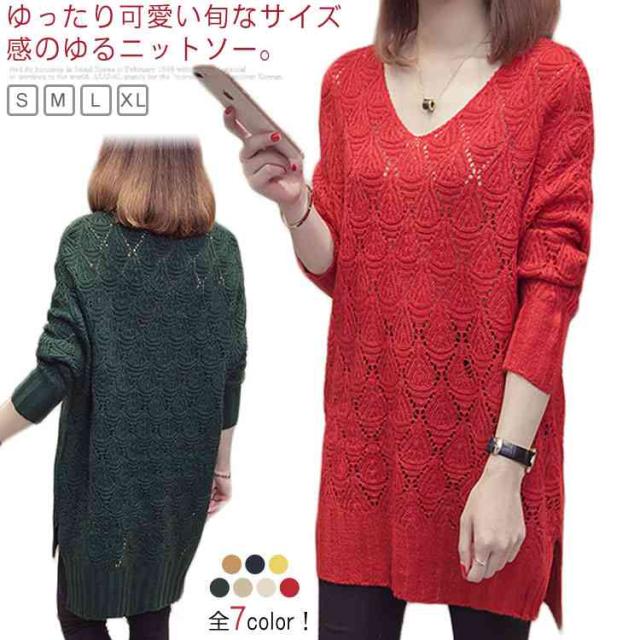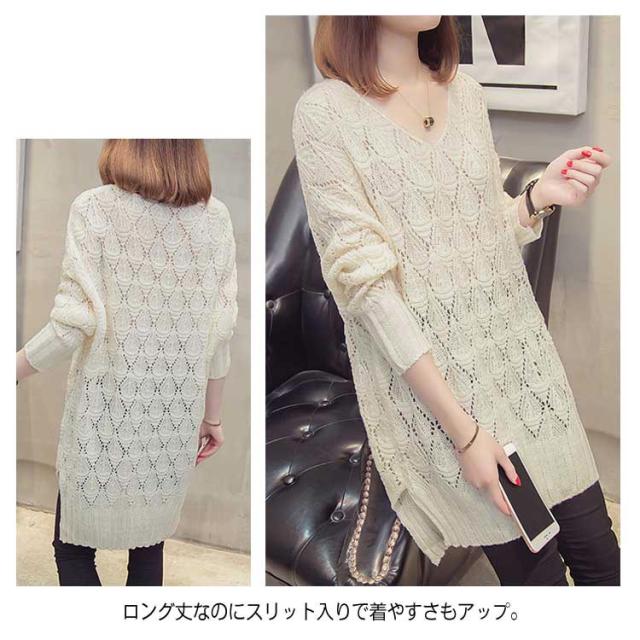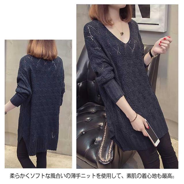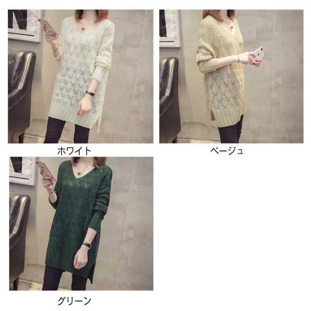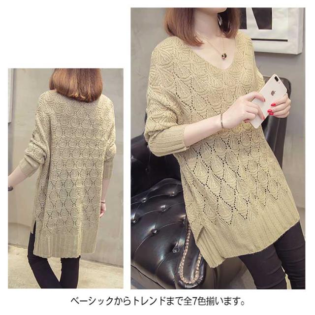 全7color!サイトスリット×透け編み!ロングニット レディース ニット セーター プルオーバー ロングニットソー 透け編み サマーニット Vネック 長袖 春ニット 春 春服 春物 ゆったり 可愛い