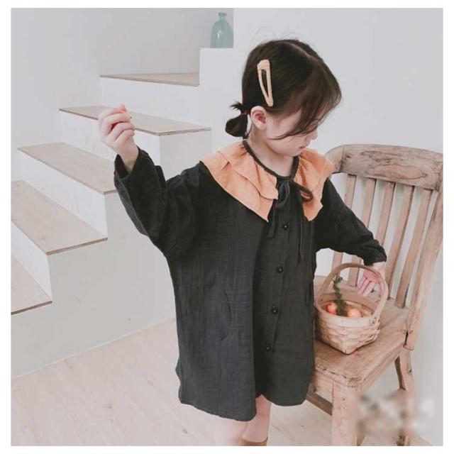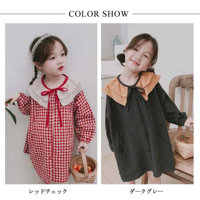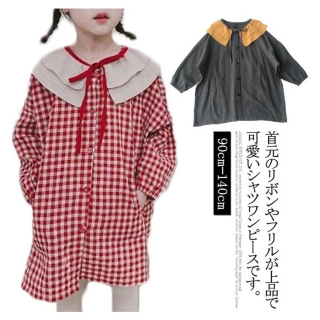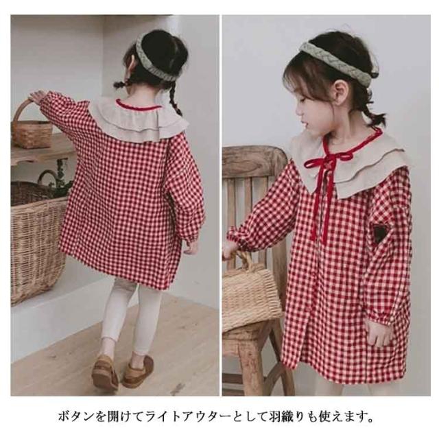 キッズ ワンピース チェック ライトアウター ロング丈カーディガン 韓国服 キッズ 女の子 ワンピース 長袖 リボン フリル 90 100 110 120 130 140送料無料
