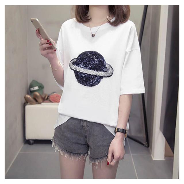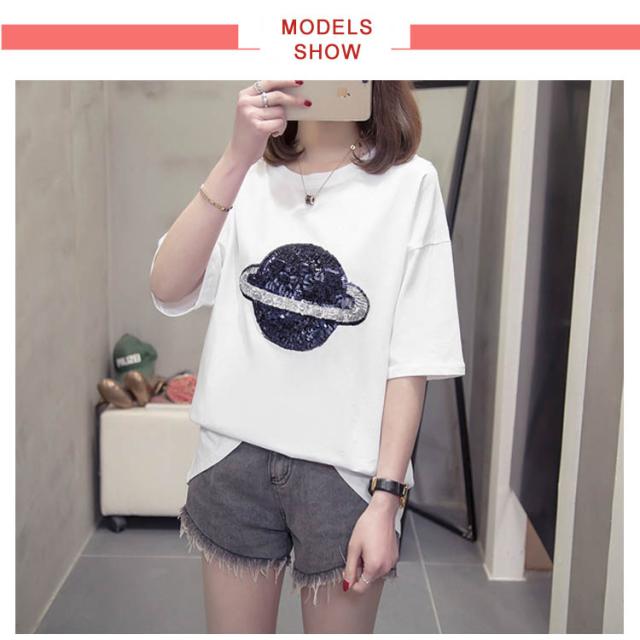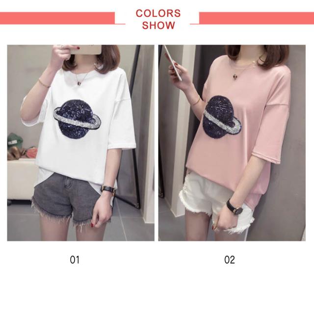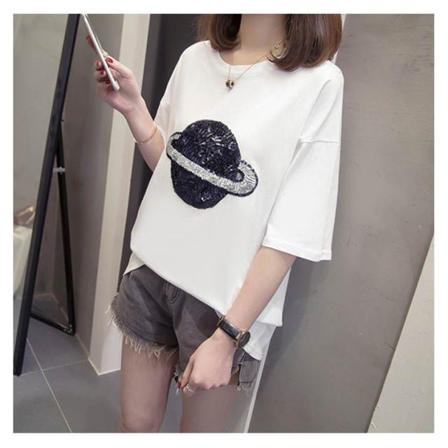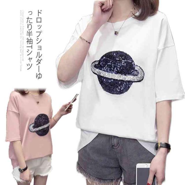 Tシャツ ゆるTシャツ ゆるカットソー ゆったり ドロップショルダー 宇宙 レディース トップス送料無料
