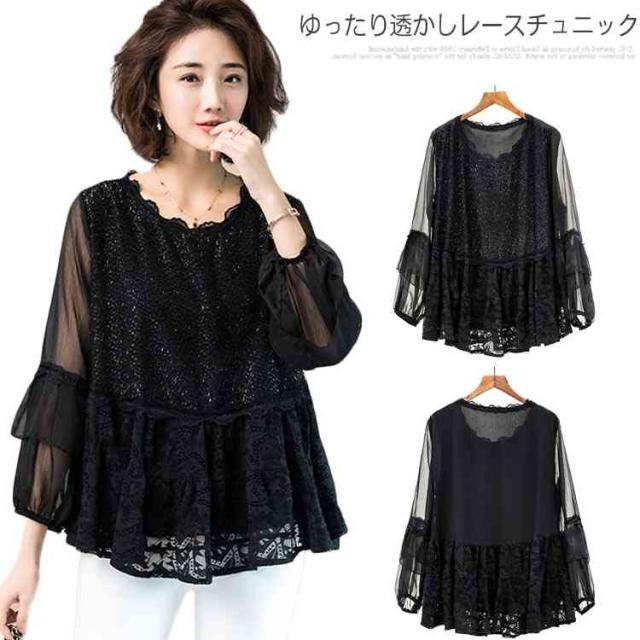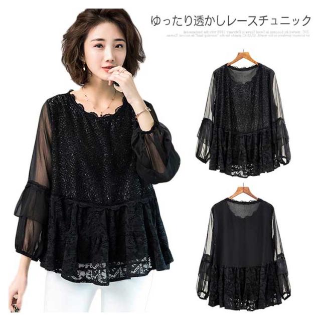 春新作 ゆったり透かしレースチュニック