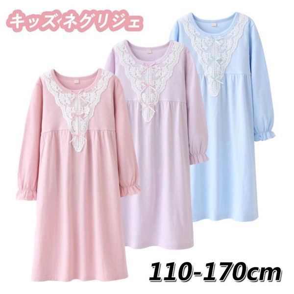 パジャマ キッズ ネグリジェ 女の子 長袖 ルーム ワンピース 韓国風 子供パジャマ レース かわいい ナイトウェア ナイトドレス 110 120 130 140 150
