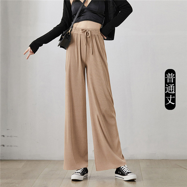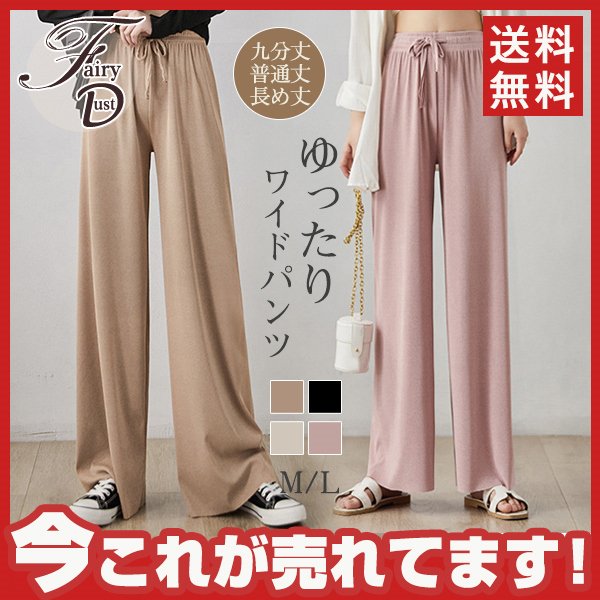 ワイドパンツ ゆる 部屋着 ウエストゴム 体型カバー リブ レディース 3タイプ ボトムス ズボン ウエスト紐 リラックスパンツ 着痩せ 送料無料