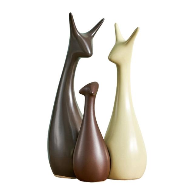 家族の鹿の彫刻の飾りカップルツリー 置物像クラフトディープ 3個