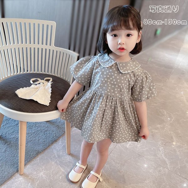 子供服 ワンピース グレー 綿 可愛い 夏着 女の子 幼児 夏ワンピ 半袖 ワンピー 姉妹 双子 膝丈上 コーデ デイリー 可愛い キッズ ベビー ワンピース 80-130