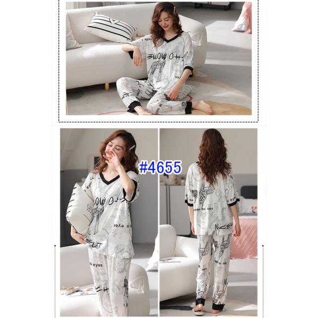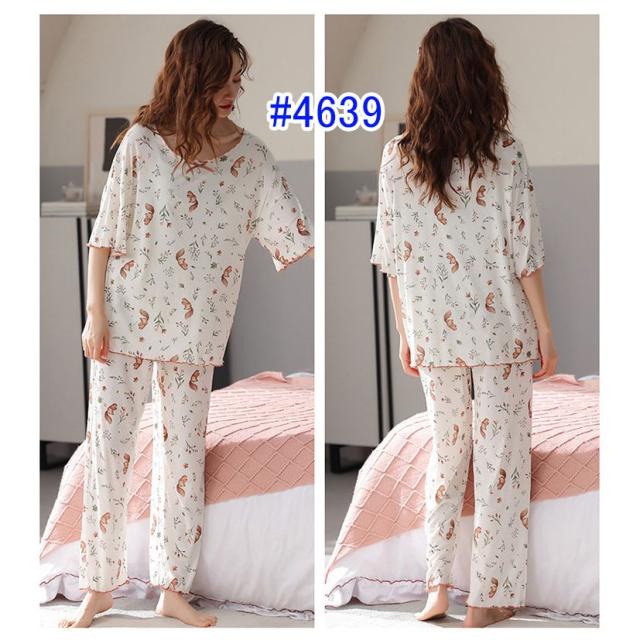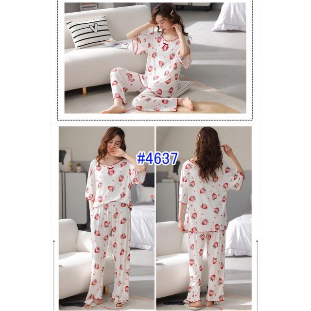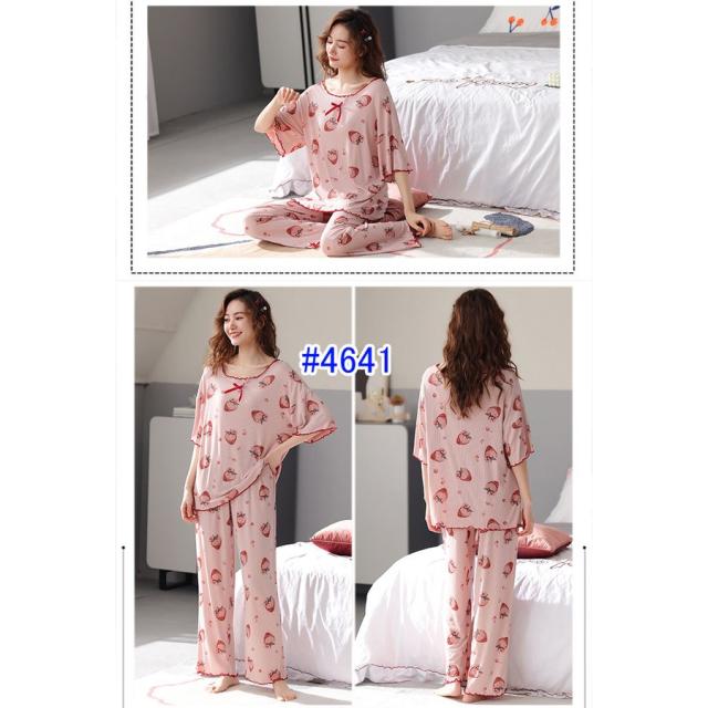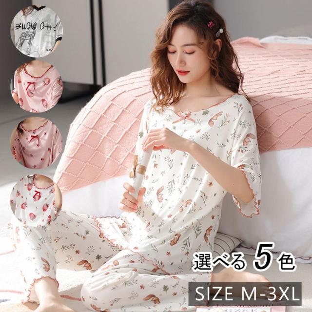 パジャマ ルームウェア レディース 春夏 半袖 パジャマ 綿 ルームウェア 大きいサイズ ロングパンツ 上下セット 可愛い パジャマ 女性 部屋着 寝間着 韓国風