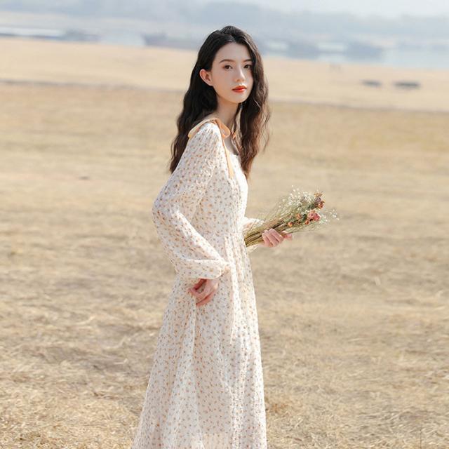 ワンピース レディース 長袖 花柄 20代 30代 きれいめ シフォン マキシワンピース 春秋 モリガン 結婚式ドレス オシャ 可愛い 日常使い お出かけ リゾート