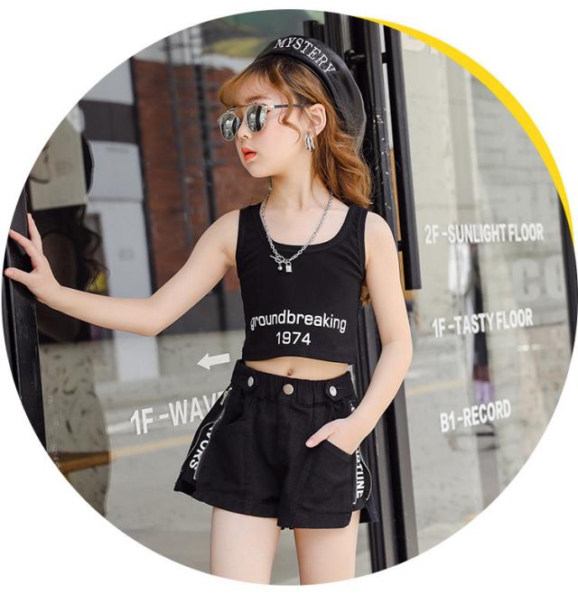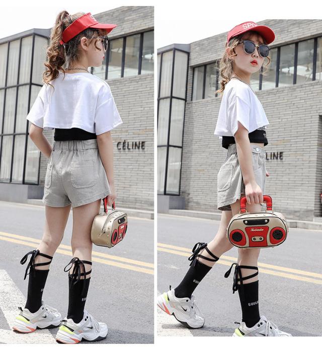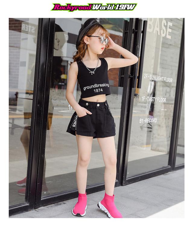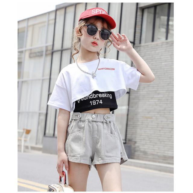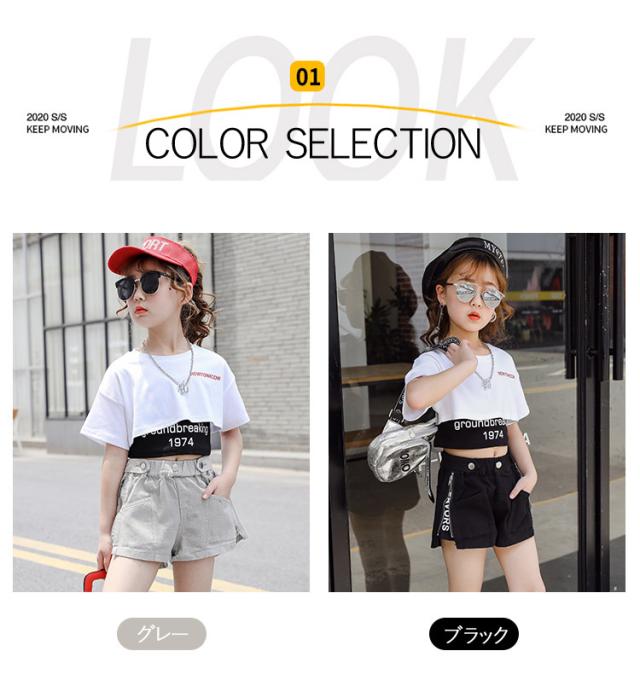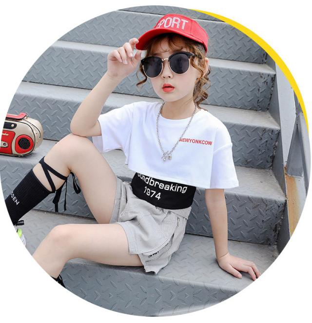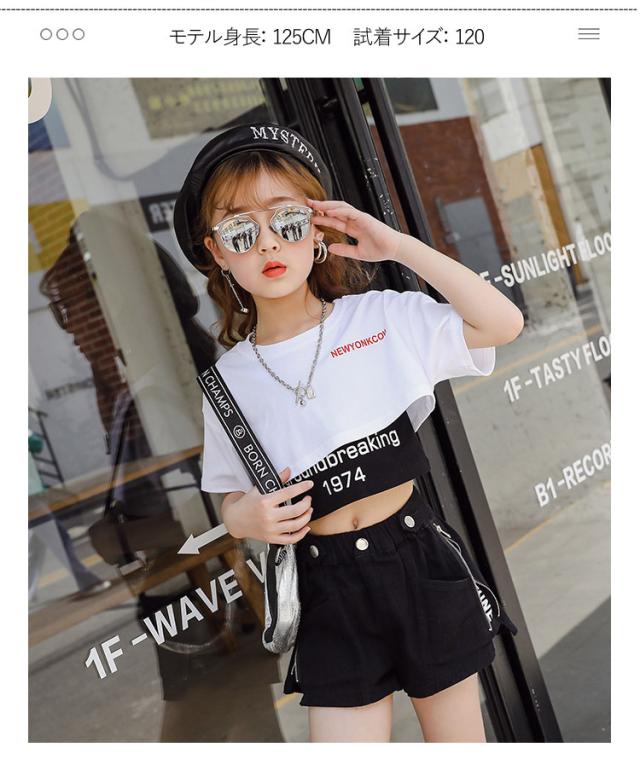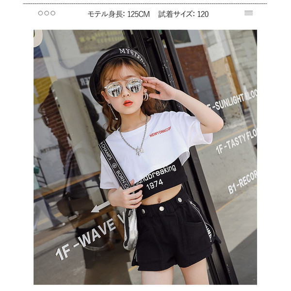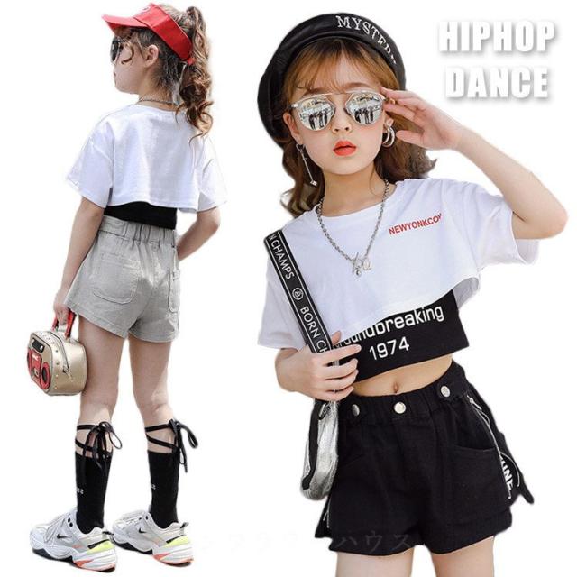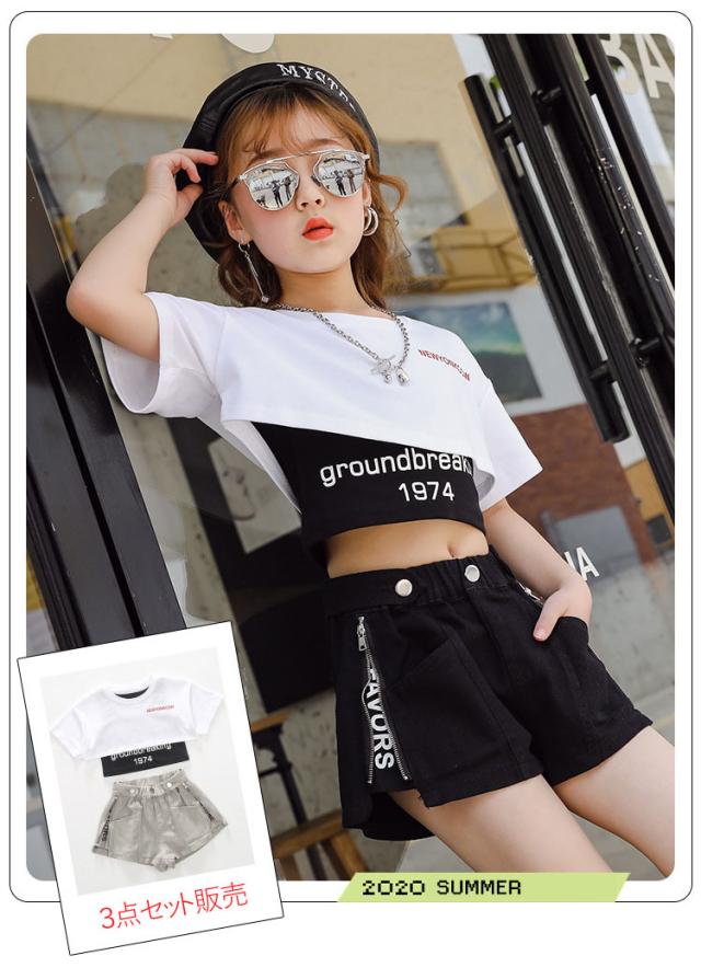 キッズ ダンス衣装 女の子 ヒップホップ へそ出し セットアップ ストリートダンス 韓国 3点セット 半袖 子供 普段着 イベント 発表会 110-160cm セット販売