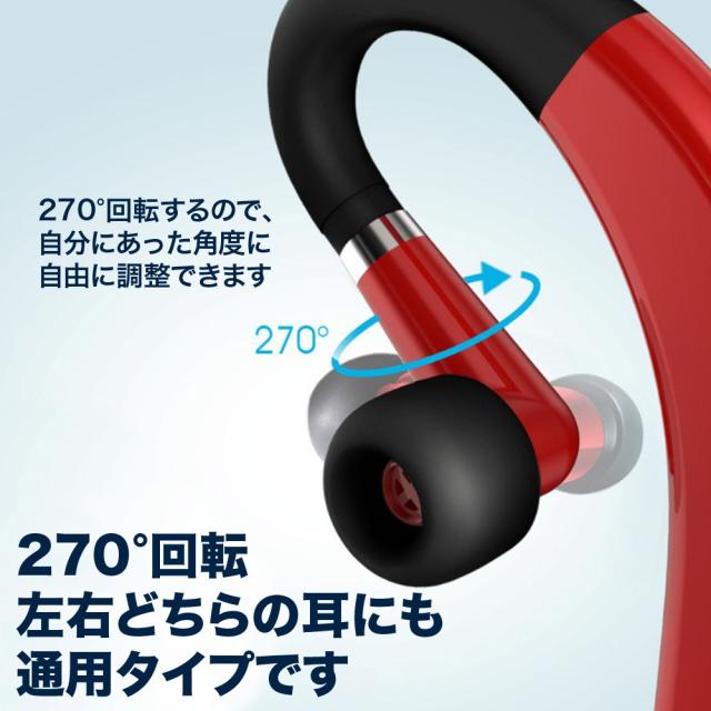 ブルートゥースイヤホン ワイヤレスイヤホン 防水 耳掛け型 片耳 高音質 270°回転 左右耳兼用
